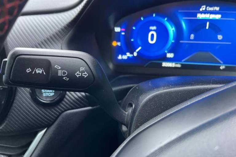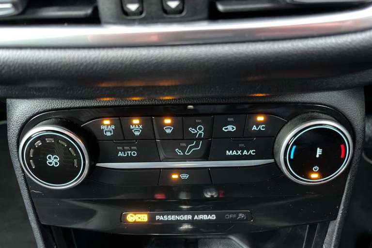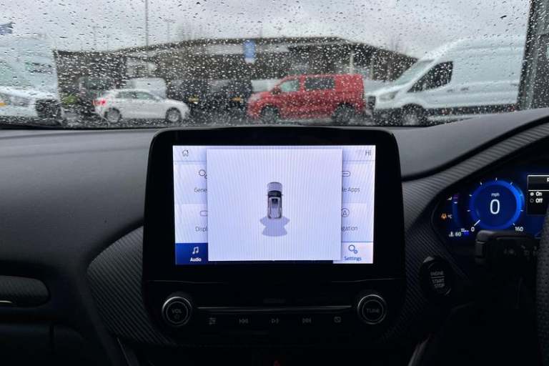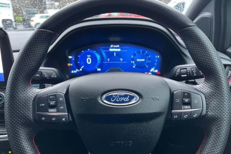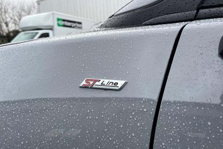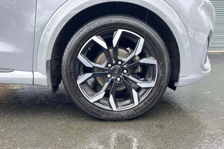 Driver impairment monitor, Emergency call service, Ford easy fuel, Full digital 12.3 instrument cluster, Lane keeping aid with lane departure warning, Power assist steering, Power start button, Rear parking sensor, Selectable drive modes(Normal, Eco, Sport, Slippery and Trail), Speed sign recognition, Automatic headlights with auto high beam, Automatic rain sensing wipers, Front fog lamps, LED daytime running lights, LED rear lamps, Power foldable heated door mirrors with puddle lamps, Privacy glass to side rear windows and tailgate glass, Quickclear heated windscreen, Rear side wing doors, Rear wiper, ST-Line body styling kit with unique grille, Third brake light, 3 seat bench in 2nd row, Centre console with armrest and stowage, Ford megabox extended bootspace, Front and rear head restraints, Front floor mats, Manual 4 way driver seat adjust with lumbar adjustment, Manual 4 way passenger seat with lumbar seat adjustment, Sensico partial premium upholstery, Single front passenger seat, ST-Line flat bottomed sensico leather steering wheel with leather handbrake and aluminium gear knob, Wireless charging pad with electronic air temperature control (EATC), 3 rear seatbelts, Child safety lock, Electronic stability control (ESC) and hill start assist, Pedestrian/cyclist detection & post-collision braking, Pre collision assist system, Tyre pressure monitoring system (TPMS)