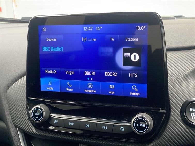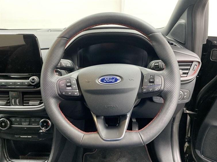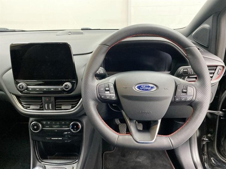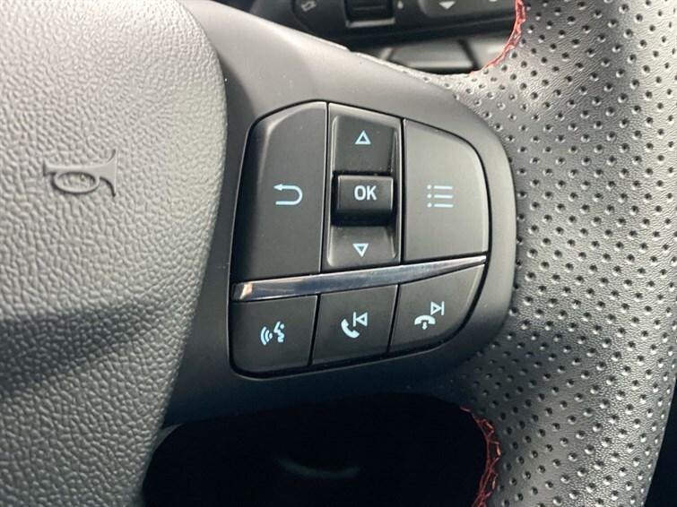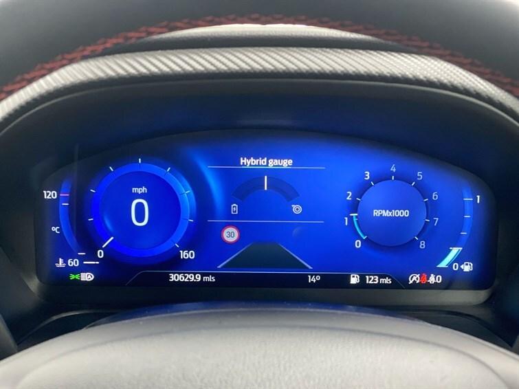 3 rear seatbelts,3 seat bench in 2nd row,Automatic headlights with auto high beam,Automatic rain sensing wipers,B&O Premium Audio system + Ford SYNC 3 navigation pack - Puma,Carbon look interior deco spears,Centre console with armrest and stowage,Child safety lock,Driver impairment monitor,Electronic stability control (ESC) and hill start assist,Emergency call service,Ford easy fuel,Ford megabox extended bootspace,Front and rear head restraints,Front floor mats,Front fog lamps,Full digital 12.3"" instrument cluster,Lane keeping aid with lane departure warning,LED daytime running lights,LED rear lamps,Manual 4 way driver seat adjust with lumbar adjustment,Manual 4 way passenger seat with lumbar seat adjustment,Pedestrian/cyclist detection & post-collision braking,Power assist steering,Power foldable heated door mirrors with puddle lamps,Power start button,Pre collision assist system,Privacy glass to side rear windows and tailgate glass,Quickclear heated windscreen,Rear parking sensor,Rear side wing doors,Rear wiper,Selectable drive modes(Normal, Eco, Sport, Slippery and Trail),Sensico partial premium upholstery,Single front passenger seat,Speed sign recognition,Sport suspension,ST-Line body styling kit with unique grille,ST-Line flat bottomed sensico leather steering wheel with leather handbrake and aluminium gear knob,Thatcham alarm,Third brake light,Tyre pressure monitoring system (TPMS),Wireless charging pad with electronic air temperature control (EATC)