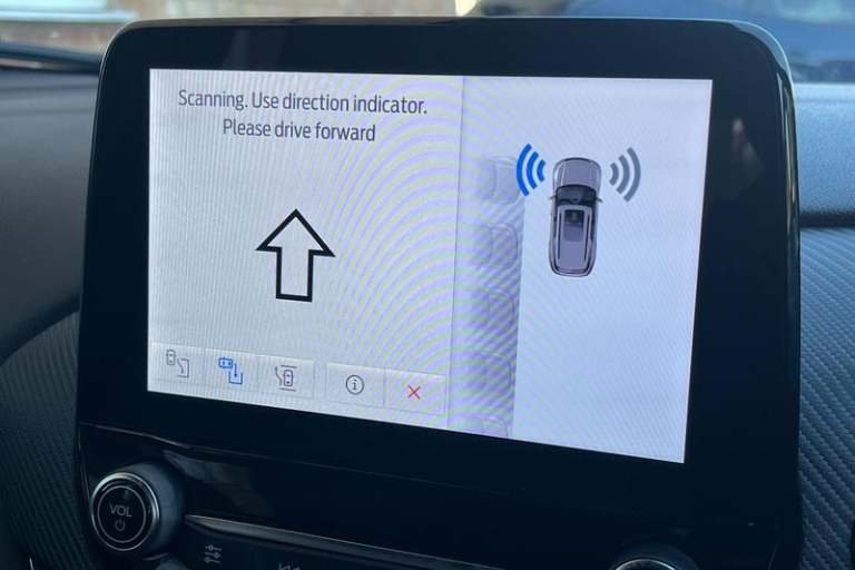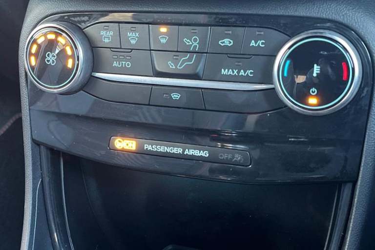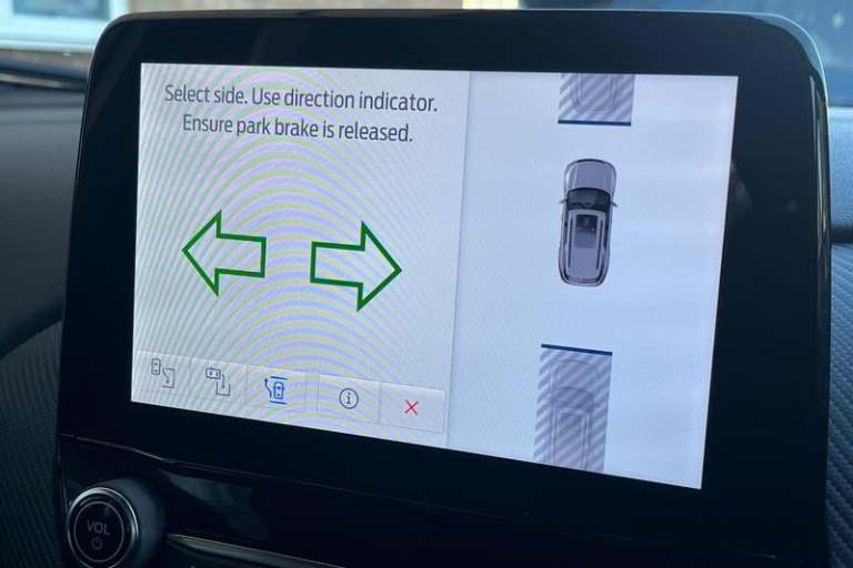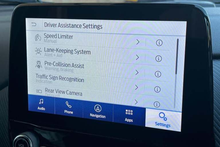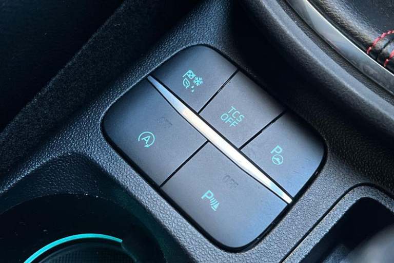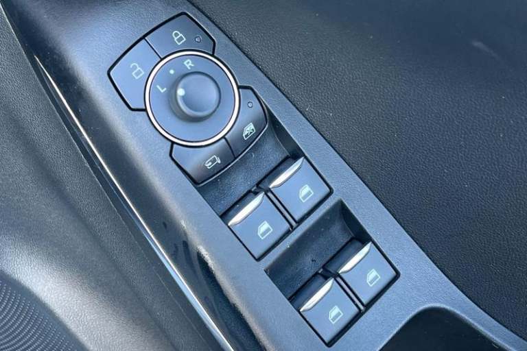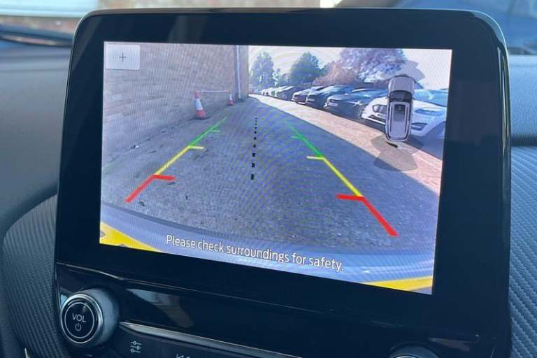 Driver impairment monitor, Emergency call service, Ford easy fuel, Full digital 12.3 instrument cluster, Lane keeping aid with lane departure warning, Power assist steering, Power start button, Rear parking sensor, Selectable drive modes(Normal, Eco, Sport, Slippery and Trail), Speed sign recognition, Automatic headlights with auto high beam, Automatic rain sensing wipers, Front fog lamps, LED daytime running lights, LED rear lamps, Power foldable heated door mirrors with puddle lamps, Privacy glass to side rear windows and tailgate glass, Quickclear heated windscreen, Rear side wing doors, Rear wiper, ST-Line body styling kit with unique grille, Third brake light, 3 seat bench in 2nd row, Centre console with armrest and stowage, Ford megabox extended bootspace, Front and rear head restraints, Front floor mats, Manual 4 way driver seat adjust with lumbar adjustment, Manual 4 way passenger seat with lumbar seat adjustment, Sensico partial premium upholstery, Single front passenger seat, ST-Line flat bottomed sensico leather steering wheel with leather handbrake and aluminium gear knob, Wireless charging pad with electronic air temperature control (EATC), 3 rear seatbelts, Child safety lock, Electronic stability control (ESC) and hill start assist, Pedestrian/cyclist detection & post-collision braking, Pre collision assist system, Tyre pressure monitoring system (TPMS)