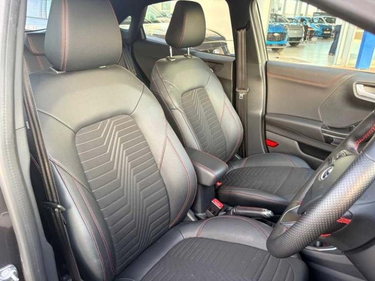 B&O Premium Audio System and Ford SYNC 3 Navigation, Wireless Charging Pad with Electronic Air Temperature Control EATC, Cruise Control with Intelligent Speed Assist, Pre-Collision Assist with Autonomous Emergency Braking and Pedestrian-Cyclist Detection, Rear Parking Sensors, Trip-Fuel Computer, Tyre Pressure Monitoring System - TPMS, 18in Alloy Wheels - 5-Spoke - Matt Black Machined Finish, Acoustic Laminated Windscreen, Active Grille Shutter, Ecoboost Hybrid Tailgate Badge, Electric Windows - Front and Rear, Front Bumper - Unique ST-Line Sport Design - Body Colour, Large Rear Spoiler - Body Colour with Centre High Mounted Stop Light, Locking Wheel Nuts, Lower Bodyside Moulding - Body Colour, Power-Foldable Heated Door Mirrors with Puddle Lamps, Privacy Glass, Puma Badge, Quickclear Heated Windscreen, Rear Bumper Body Colour - Diffuser, ST-Line Badge, ST-Line Body Styling Kit, Tailgate - Manual, Tyre Inflation Kit, Automatic Headlights with Rain-Sensing Wipers and Auto High Beam, Front Fog Lights, LED Rear Lights, Projector Headlamps with LED Daytime Running Lights, Automatic Dimming Rear View Mirror, Carbon-Look Interior Deco Spears, Centre Console - Premium with Openable Stowage Area with USB Connectivity - 2 Cupholders and 12v Power Point, Courtesy Lights - Ambient LED Courtesy Lighting - Single Colour, Drivers Manual 4-Way Seat Adjustment with Manual Lumbar Adjust, Electronic Air Temperature Control - EATC, Ford MegaBox Extended Bootspace, Ford Power Starter Button, Front