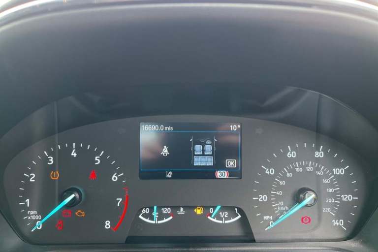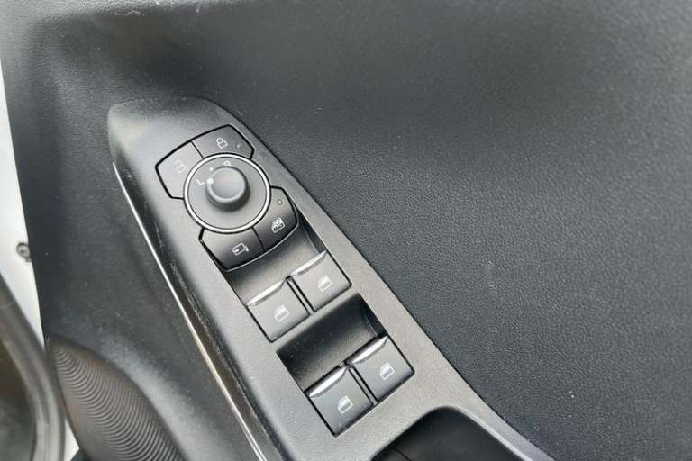 Driver impairment monitor, Emergency call service, Ford easy fuel, Lane keeping aid with lane departure warning, Power assist steering, Power start button, Rear parking sensor, Selectable drive modes(Normal, Eco, Sport, Slippery and Trail), Speed sign recognition, Automatic headlights with auto high beam, Automatic rain sensing wipers, LED rear lamps, Power foldable heated door mirrors with puddle lamps, Projector headlamps with LED day time running lights and front fog lamps, Quickclear heated windscreen, Rear side wing doors, Rear wiper, Third brake light, 3 seat bench in 2nd row, Centre console with armrest and stowage, Electronic automatic temperature control (EATC), Ford megabox extended bootspace, Front and rear head restraints, Front floor mats, Manual 2 way passenger seat adjustment, Manual 4 way driver seat adjust with lumbar adjustment, Sensico leather steering wheel/gear knob/handbrake, Single front passenger seat, Titanium cloth upholstery, 3 rear seatbelts, Child safety lock, Electronic stability control (ESC) and hill start assist, Pedestrian/cyclist detection & post-collision braking, Pre collision assist system, Tyre pressure monitoring system (TPMS)