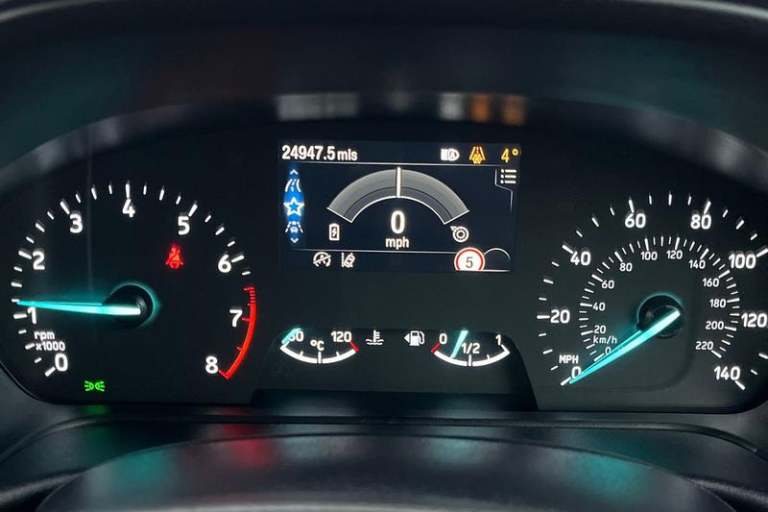 Driver impairment monitor, Emergency call service, Ford easy fuel, Lane keeping aid with lane departure warning, Power assist steering, Power start button, Rear parking sensor, Selectable drive modes(Normal, Eco, Sport, Slippery and Trail), Speed sign recognition, Automatic headlights with auto high beam, Automatic rain sensing wipers, LED rear lamps, Power foldable heated door mirrors with puddle lamps, Projector headlamps with LED day time running lights and front fog lamps, Quickclear heated windscreen, Rear side wing doors, Rear wiper, Third brake light, 3 seat bench in 2nd row, Centre console with armrest and stowage, Electronic automatic temperature control (EATC), Ford megabox extended bootspace, Front and rear head restraints, Front floor mats, Manual 2 way passenger seat adjustment, Manual 4 way driver seat adjust with lumbar adjustment, Sensico leather steering wheel/gear knob/handbrake, Single front passenger seat, Titanium cloth upholstery, 3 rear seatbelts, Child safety lock, Electronic stability control (ESC) and hill start assist, Pedestrian/cyclist detection & post-collision braking, Pre collision assist system, Tyre pressure monitoring system (TPMS)