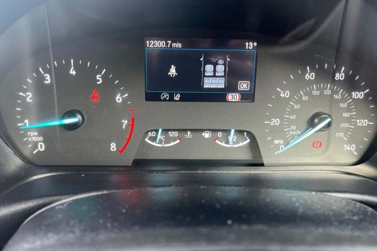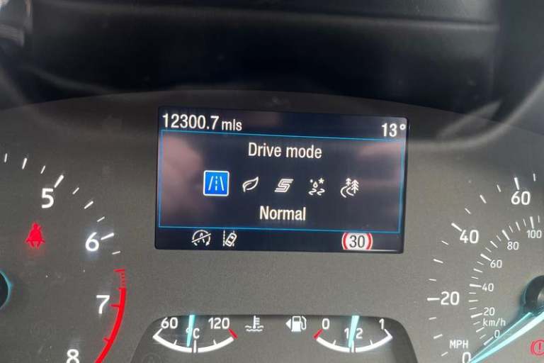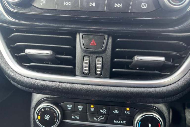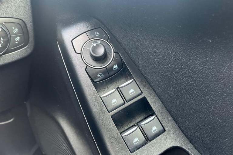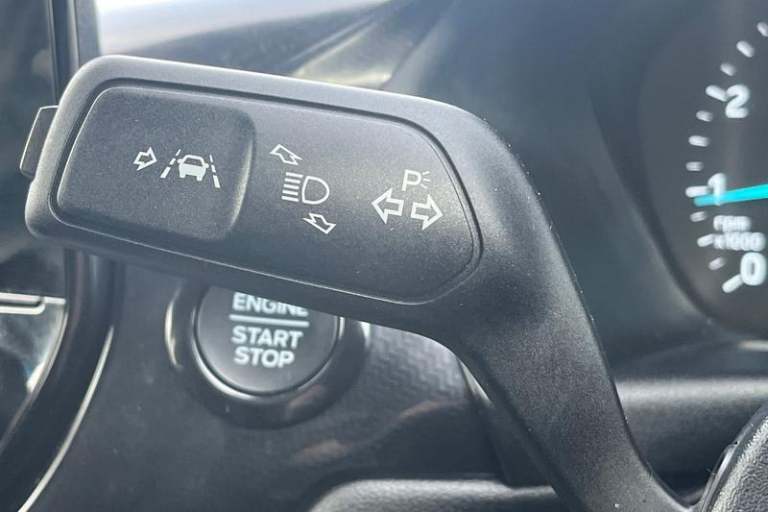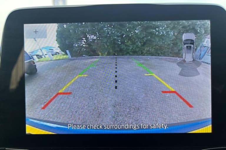 Driver impairment monitor, Emergency call service, Ford easy fuel, Lane keeping aid with lane departure warning, Power assist steering, Power start button, Rear parking sensor, Selectable drive modes(Normal, Eco, Sport, Slippery and Trail), Speed sign recognition, Automatic headlights with auto high beam, Automatic rain sensing wipers, LED rear lamps, Power foldable heated door mirrors with puddle lamps, Projector headlamps with LED day time running lights and front fog lamps, Quickclear heated windscreen, Rear side wing doors, Rear wiper, Third brake light, 3 seat bench in 2nd row, Centre console with armrest and stowage, Electronic automatic temperature control (EATC), Ford megabox extended bootspace, Front and rear head restraints, Front floor mats, Manual 2 way passenger seat adjustment, Manual 4 way driver seat adjust with lumbar adjustment, Sensico leather steering wheel/gear knob/handbrake, Single front passenger seat, Titanium cloth upholstery, 3 rear seatbelts, Child safety lock, Electronic stability control (ESC) and hill start assist, Pedestrian/cyclist detection & post-collision braking, Pre collision assist system, Tyre pressure monitoring system (TPMS)