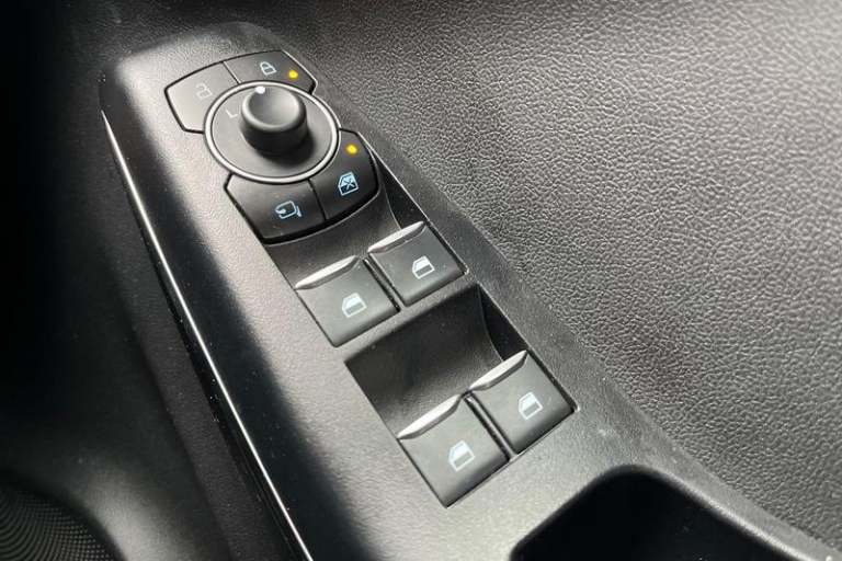 Driver impairment monitor, Emergency call service, Ford easy fuel, Lane keeping aid with lane departure warning, Power assist steering, Power start button, Rear parking sensor, Selectable drive modes(Normal, Eco, Sport, Slippery and Trail), Speed sign recognition, Automatic headlights with auto high beam, Automatic rain sensing wipers, LED rear lamps, Power foldable heated door mirrors with puddle lamps, Projector headlamps with LED day time running lights and front fog lamps, Quickclear heated windscreen, Rear side wing doors, Rear wiper, Third brake light, 3 seat bench in 2nd row, Centre console with armrest and stowage, Electronic automatic temperature control (EATC), Ford megabox extended bootspace, Front and rear head restraints, Front floor mats, Manual 2 way passenger seat adjustment, Manual 4 way driver seat adjust with lumbar adjustment, Sensico leather steering wheel/gear knob/handbrake, Single front passenger seat, Titanium cloth upholstery, 3 rear seatbelts, Child safety lock, Electronic stability control (ESC) and hill start assist, Pedestrian/cyclist detection & post-collision braking, Pre collision assist system, Tyre pressure monitoring system (TPMS)