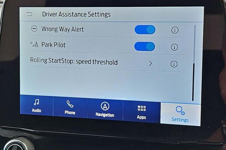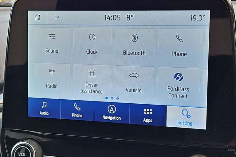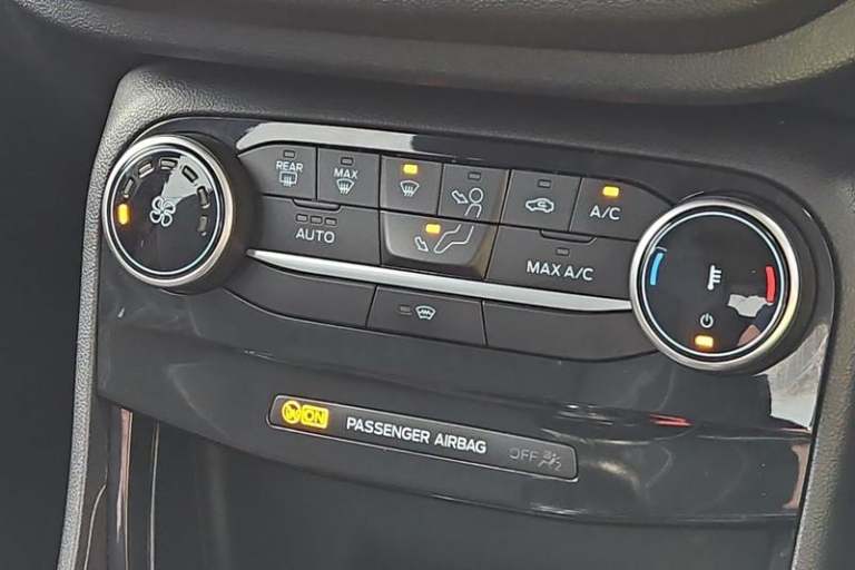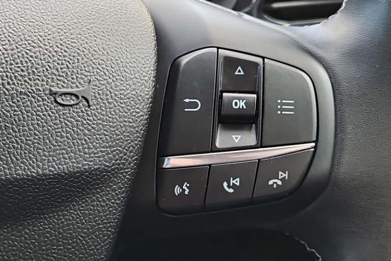 Driver impairment monitor, Emergency call service, Ford easy fuel, Lane keeping aid with lane departure warning, Power assist steering, Power start button, Rear parking sensor, Selectable drive modes(Normal, Eco, Sport, Slippery and Trail), Speed sign recognition, Automatic headlights with auto high beam, Automatic rain sensing wipers, LED rear lamps, Power foldable heated door mirrors with puddle lamps, Projector headlamps with LED day time running lights and front fog lamps, Quickclear heated windscreen, Rear side wing doors, Rear wiper, Third brake light, 3 seat bench in 2nd row, Centre console with armrest and stowage, Electronic automatic temperature control (EATC), Ford megabox extended bootspace, Front and rear head restraints, Front floor mats, Manual 2 way passenger seat adjustment, Manual 4 way driver seat adjust with lumbar adjustment, Sensico leather steering wheel/gear knob/handbrake, Single front passenger seat, Titanium cloth upholstery, 3 rear seatbelts, Child safety lock, Electronic stability control (ESC) and hill start assist, Pedestrian/cyclist detection & post-collision braking, Pre collision assist system, Tyre pressure monitoring system (TPMS)