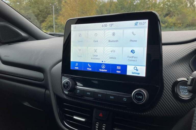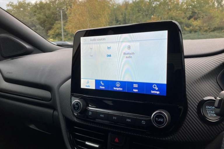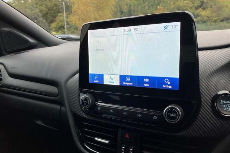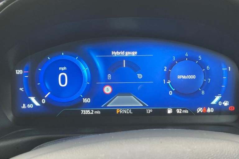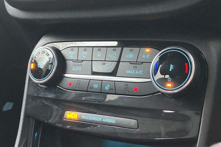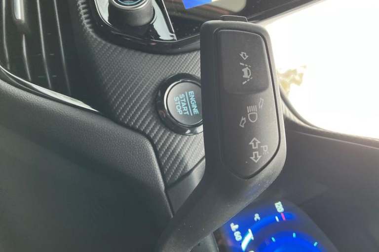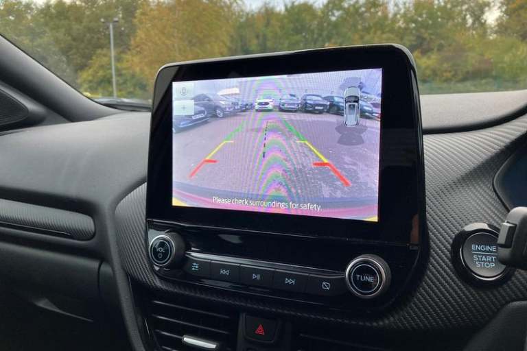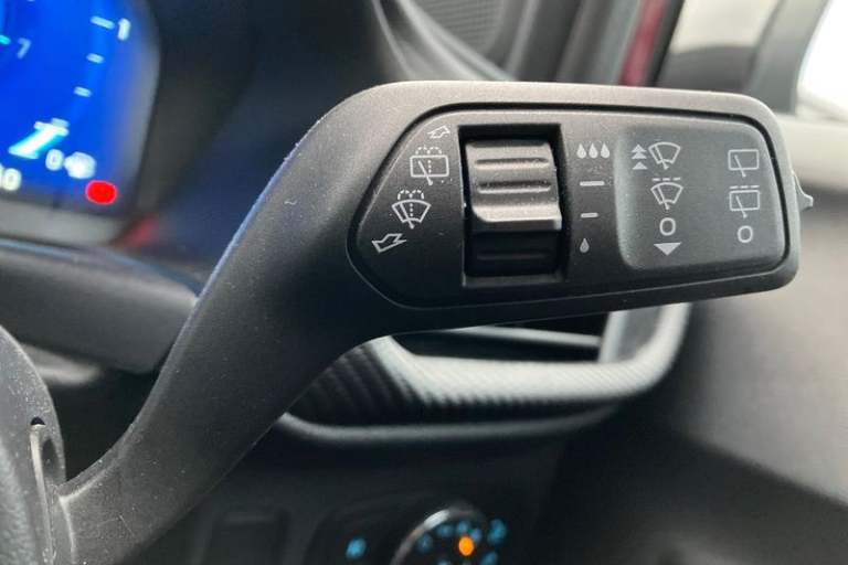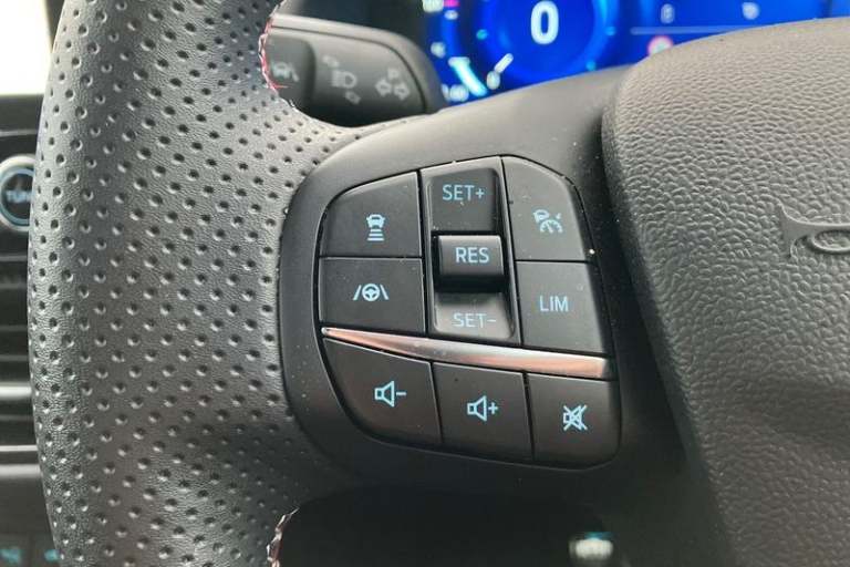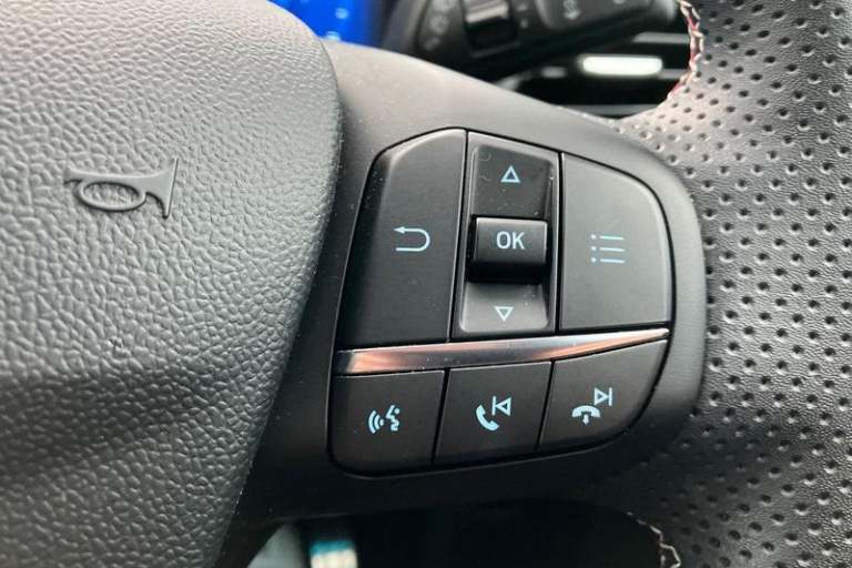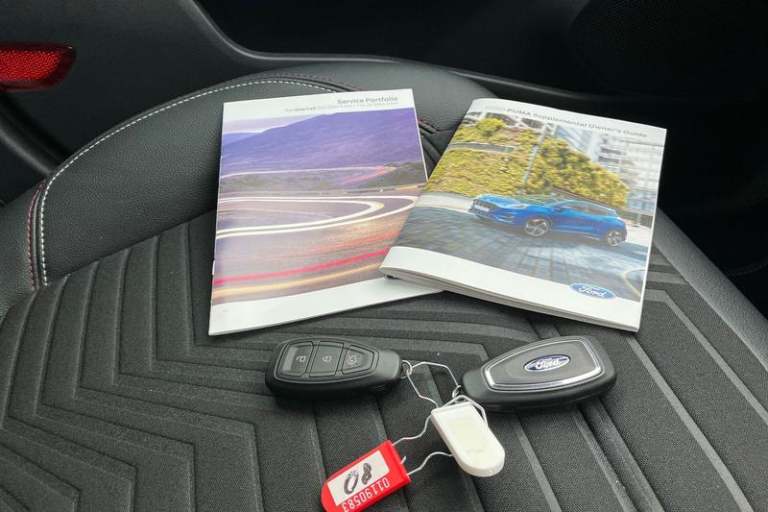 Driver impairment monitor, Emergency call service, Ford easy fuel, Full digital 12.3 instrument cluster, Hands free power tailgate with keyless entry system, Lane keeping aid with lane departure warning, Power assist steering, Power start button, Rear parking sensor, Selectable drive modes(Normal, sport, Eco, trail, slippery), Speed sign recognition, Automatic headlights with auto high beam, Automatic rain sensing wipers, Black contrast roof including A pillars, rear roof spoiler and door mirrors, Exclusive paint, Front fog lamps, LED daytime running lights, LED rear lamps, Power foldable heated door mirrors with puddle lamps, Privacy glass to side rear windows and tailgate glass, Quickclear heated windscreen, Rear side wing doors, Rear wiper, ST-Line body styling kit with unique grille and large rear spoiler, Third brake light, 3 seat bench in 2nd row, Centre console with armrest and stowage, Ford megabox extended bootspace, Front and rear head restraints, Front floor mats, Manual 4 way driver seat adjust with lumbar adjustment, Manual 4 way passenger seat with lumbar seat adjustment, Sensico partial premium upholstery, Single front passenger seat, ST-Line flat bottomed sensico leather steering wheel with leather handbrake and aluminium gear knob, Wireless charging pad with electronic air temperature control (EATC), 3 rear seatbelts, Child safety lock, Electronic stability control (ESC) and hill start assist, Pedestrian/cyclist detection & post-collision braking, Pre collision