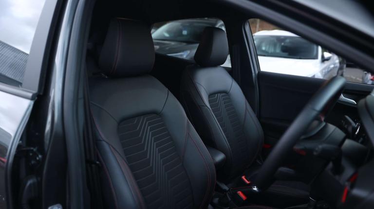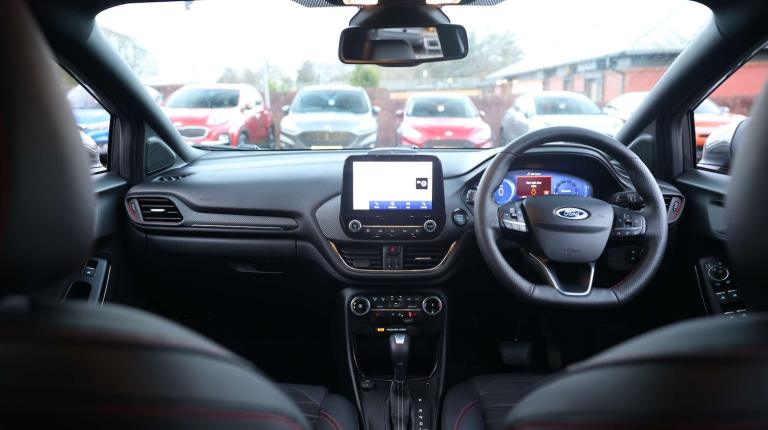 .The Ford Puma 1.0 EcoBoost ST-Line X Auto blends sporty character with everyday practicality in a way few compact SUVs can match. Its 1.0 EcoBoost engine paired with smooth automatic transmission delivers punchy, efficient performance, while selectable drive modes including Sport, Trail and Slippery let you tailor every journey. With rear parking sensors, lane-keeping aid and a full 12.3'' digital cluster, youre supported by smart tech from the moment you set off. The exterior carries the unmistakable ST-Line attitude. A body-coloured finish, large rear spoiler, sports suspension and power-fold heated mirrors with puddle lamps give it real road presence. Automatic headlights with auto high beam, rain-sensing wipers, LED rear lamps and those sharp cornering fog lights keep you confidently visible in any weather. Privacy glass and Fords Quickclear heated windscreen add both style and convenience to daily driving. Inside, the ST-Line X continues to impress. Sensico partial premium upholstery, a flat-bottomed steering wheel, carbon-look accents and a centre armrest create a sporty but refined space. The Ford MegaBox boosts boot practicality, while adjustable driver and passenger seats ensure comfort for every trip. EATC climate control and front/rear floor mats complete the thoughtful cabin layout. Tech lovers will appreciate the wireless charging pad and the superb B&O Premium Audio System paired with Ford SYNC 3 navigation making every drive feel a little more special. And with ESC, hill start assist, pre-collision assist with emergency braking, pedestrian/cyclist detection and a Thatcham alarm, its as safe as it is stylish..Ford easy fuel, Full digital 12.3'' instrument cluster, Lane keeping aid with lane departure warning, Power assist steering, Rear parking sensor, Selectable drive modes(Normal, Eco, Sport, Slippery and Trail), Wireless charging pad, Automatic headlights with rain sensing wipers and auto high beam, Body coloured door mirrors, Front fog lights with cornering lights and LED rear lamps, Power foldable heated door mirrors with puddle lamps, Privacy glass to side rear windows and tailgate glass, Quickclear heated windscreen, Rear wiper, ST-Line body kit with large rear spoiler wth sports suspension, Centre console with armrest and stowage, Driver and passenger seat lumbar and height adjust, EATC - Electronic Auto Temperature control, Ford megabox extended bootspace, Front and rear floor mats, Front and rear head restraints, Manual air