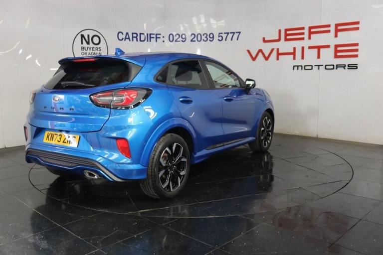 NO BUYER FEES - Ford warranty until September 2026, Service history SAT NAV HALF-LEATHER.18in Alloy Wheels - 5-Spoke - Matt Black Machined Finish, ABS - Anti-lock Braking System, Acoustic Laminated Windscreen, Active Grille Shutter, Automatic Dimming Rear View Mirror, Automatic Headlights with Rain-Sensing Wipers and Auto High Beam, B&O Premium Audio System and Ford SYNC 3 Navigation, Carbon-Look Interior Deco Spears, Centre Console - Premium with Openable Stowage Area with USB Connectivity - 2 Cupholders and 12v Power Point, Courtesy Lights - Ambient LED Courtesy Lighting - Single Colour, Cruise Control with Intelligent Speed Assist, Drivers Manual 4-Way Seat Adjustment with Manual Lumbar Adjust, ESC - Electronic Stability Control and Hill Start Assist, Ecoboost Hybrid Tailgate Badge, Electric Windows - Front and Rear, Electronic Air Temperature Control - EATC, Emergency Brake Warning - Automatic Hazard Warning Lights, First Aid Kit Strap, Ford MegaBox Extended Bootspace, Ford Power Starter Button, Front Bumper - Unique ST-Line Sport Design - Body Colour, Front Floor Mats, Front Fog Lights, Front Seats - Sports Style, Full Digital 12.3in Instrument Cluster, Gear Knob - Aluminium, Handbrake - Black Sensico Trimmed with Stitching, Headliner - Deluxe, Instrument Panel - High Level, Intelligent Speed Assistance, LED Rear Lights, Lane Keeping Aid with Lane Departure Warning, Large Rear Spoiler - Body Colour with Centre High Mounted Stop Light, Locking Wheel Nuts, Lower Bodyside Moulding - Body Colour, Passenger 4-Way Seat with Lumbar Adjustment, Post Collision Braking, Power Steering, Power-Foldable Heated Door Mirrors with Puddle Lamps, Pre-Collision Assist with Autonomous Emergency Braking and Pedestrian-Cyclist Detection, Privacy Glass, Projector Headlamps with LED Daytime Running Lights, Puma Badge, Quickclear Heated Windscreen, Rear Bumper Body Colour - Diffuser, Rear Parking Sensors, Rear Seats - 2-Way Head Restraint Up-Down, Rear Seats - Second Row 60-40 Folding Seats, Remote Central-Double Locking, Restrain Device Pack, ST-Line Badge, ST-Line Body Styling Kit, ST-Line Flat-Bottomed Leather Steering Wheel with Unique Red Stitching, Selectable Driving Modes - Normal - Eco - Sport - Slippery and Trail, Soft-feel Gearshift Boot with Red Stitching, Speed Limiter, Sports Suspension, Tailgate - Manual, Thatcham Alarm, Traction Control and Emergency Braking Assistance, Trip-Fuel Computer, Tyre Inflation Kit, Tyre Pressure Monitoring System - TPMS, Wireless Charging Pad with Electronic Air Temperature Control EATC, Desert Island Blue, Driver A