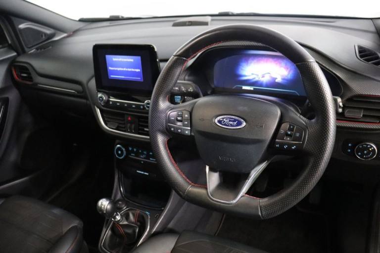 NO BUYER FEES - Ford warranty until June 2026, One owner, Service history, Spare key supplied SAT NAV HALF-LEATHER.18in Alloy Wheels - 5-Spoke - Matt Black Machined Finish, ABS - Anti-lock Braking System, Acoustic Laminated Windscreen, Active Grille Shutter, Automatic Dimming Rear View Mirror, Automatic Headlights with Rain-Sensing Wipers and Auto High Beam, B&O Premium Audio System and Ford SYNC 3 Navigation, Carbon-Look Interior Deco Spears, Centre Console - Premium with Openable Stowage Area with USB Connectivity - 2 Cupholders and 12v Power Point, Courtesy Lights - Ambient LED Courtesy Lighting - Single Colour, Cruise Control with Intelligent Speed Assist, Drivers Manual 4-Way Seat Adjustment with Manual Lumbar Adjust, ESC - Electronic Stability Control and Hill Start Assist, Ecoboost Hybrid Tailgate Badge, Electric Windows - Front and Rear, Electronic Air Temperature Control - EATC, Emergency Brake Warning - Automatic Hazard Warning Lights, First Aid Kit Strap, Ford MegaBox Extended Bootspace, Ford Power Starter Button, Front Bumper - Unique ST-Line Sport Design - Body Colour, Front Floor Mats, Front Fog Lights with Cornering lights and LED Rear Lamps, Front Seats - Sports Style, Full Digital 12.3in Instrument Cluster, Gear Knob - Aluminium, Handbrake - Black Sensico Trimmed with Stitching, Headliner - Deluxe, Instrument Panel - High Level, Intelligent Speed Assistance, Lane Keeping Aid with Lane Departure Warning, Large Rear Spoiler - Body Colour with Centre High Mounted Stop Light, Locking Wheel Nuts, Lower Bodyside Moulding - Body Colour, Passenger 4-Way Seat with Lumbar Adjustment, Post Collision Braking, Power Steering, Power-Foldable Heated Door Mirrors with Puddle Lamps, Pre-Collision Assist with Autonomous Emergency Braking and Pedestrian-Cyclist Detection, Privacy Glass, Projector Headlamps with LED Daytime Running Lights, Puma Badge, Quickclear Heated Windscreen, Rear Bumper Body Colour - Diffuser, Rear Parking Sensors, Rear Seats - 2-Way Head Restraint Up-Down, Rear Seats - Second Row 60-40 Folding Seats, Remote Central-Double Locking, Restrain Device Pack, ST-Line Badge, ST-Line Body Styling Kit, ST-Line Flat-Bottomed Leather Steering Wheel with Unique Red Stitching, Selectable Driving Modes - Normal - Eco - Sport - Slippery and Trail, Soft-feel Gearshift Boot with Red Stitching, Speed Limiter, Sports Suspension, Tailgate - Manual, Thatcham Alarm, Traction Control and Emergency Braking Assistance, Trip-Fuel Computer, Tyre Inflation Kit, Tyre Pressure Monitoring System - TPMS, Wireless Charging Pad with Electronic Air Temperature Control EATC, Agate
