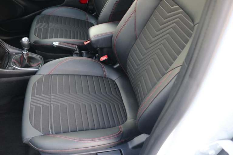 18in Alloy Wheels - 5-Spoke - Matt Black Machined Finish, ABS - Anti-lock Braking System, Acoustic Laminated Windscreen, Active Grille Shutter, Automatic Dimming Rear View Mirror, Automatic Headlights with Rain-Sensing Wipers and Auto High Beam, B&O Premium Audio System and Ford SYNC 3 Navigation, Carbon-Look Interior Deco Spears, Centre Console - Premium with Openable Stowage Area with USB Connectivity - 2 Cupholders and 12v Power Point, Courtesy Lights - Ambient LED Courtesy Lighting - Single Colour, Cruise Control with Intelligent Speed Assist, Drivers Manual 4-Way Seat Adjustment with Manual Lumbar Adjust, ESC - Electronic Stability Control and Hill Start Assist, Ecoboost Hybrid Tailgate Badge, Electric Windows - Front and Rear, Electronic Air Temperature Control - EATC, Emergency Brake Warning - Automatic Hazard Warning Lights, First Aid Kit Strap, Ford MegaBox Extended Bootspace, Ford Power Starter Button, Front Bumper - Unique ST-Line Sport Design - Body Colour, Front Floor Mats, Front Fog Lights, Front Seats - Sports Style, Full Digital 12.3in Instrument Cluster, Gear Knob - Aluminium, Handbrake - Black Sensico Trimmed with Stitching, Headliner - Deluxe, Instrument Panel - High Level, Intelligent Speed Assistance, LED Rear Lights, Lane Keeping Aid with Lane Departure Warning, Large Rear Spoiler - Body Colour with Centre High Mounted Stop Light, Locking Wheel Nuts, Lower Bodyside Moulding - Body Colour, Passenger 4-Way Seat with Lumbar Adjustment, Post Collision Braking,