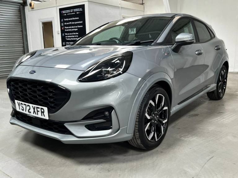 Woods of Wirral presents This 2023 Ford Puma ST-Line X, which offers the peace of mind that comes with having had only one owner and a clear vehicle history check. Complimented by a Full main dealer service history, for total piece of mind.... This stylish compact SUV is powered by an efficient 1.0L Petrol Hybrid engine, meeting Euro 6 emission standards. Inside, youll find a host of convenient features designed for modern driving, including a Wireless Charging Pad integrated with Electronic Air Temperature Control for effortless climate management. Enjoy your journeys with the premium B&O Sound System and the intuitive Ford SYNC 3 Navigation, which seamlessly connects with Android Auto and Apple CarPlay for your entertainment and navigation needs. Rear Parking Sensors are also included to assist you when manoeuvring. The Ford Puma ST-Line X stands out with its impressive performance and economy. Achieving 0-60mph in just 8.9 seconds, it offers a responsive driving experience. This model also boasts excellent fuel economy, achieving a highlight of 51 mpg, and benefits from low CO2 emissions, indicating it is a more environmentally conscious choice compared to similar vehicles. These highlights demonstrate how this Ford Puma is designed to be both engaging to drive and economical to run. UP TO 3 YEARS extended very comprehensive warranty packages available. 3 MONTH PARTS AND LABOUR WARRANTY INCLUDED. For a full list of specifications please see extra features tab below....We are TRADING STANDARDS APPROVED for your complete peace of mind... Over thirty years of trading....Low rate finance available subject to status.... WE WELCOME YOUR PART EXCHANGE .... All of our vehicles are FULLY HPI CLEAR and guaranteed mileage.... All cars go through a 124 point quality inspection.... Facetime and walkaround videos on request....Please click on our website link for a comprehensive list of all the services we provide. ..18in Alloy Wheels - 5-Spoke - Matt Black Machined Finish, B&O Premium Audio System and Ford SYNC 3 Navigation, Courtesy Lights - Ambient LED Courtesy Lighting - Single Colour, Cruise Control with Intelligent Speed Assist, Wireless Charging Pad with Electronic Air Temperature Control EATC, Front Seats - Sports Style, Solar Silver, Rear Parking Sensors, ABS - Anti-lock Braking System, Acoustic Laminated Windscreen, Active Grille Shutter, Automatic Dimming Rear View Mirror, Automatic Headlights with Rain-Sensing Wipers and Auto High Beam, Carbon-Look Interior Deco Spears, Centre Console - Premium with Openable Stowage Area with USB Connectivity - 2 Cupholders and 12v Power Point, Drivers Manual 4-Way Seat Adjustment with Manual Lumbar Adjust, Ecoboost Hybrid Tailgate Badge, Electric Windows - Front and Rear, Electronic Air Temperature Control - EATC, Emergency Brake Warning - Automatic Hazard Warning Lights, ESC - Electronic Stability Control and Hill Start Assist, First Aid Kit Strap, Floor Mats - Front and Rear, Ford MegaBox Extended Bootspace, Ford Power Starter Button, Front Bumper - Unique ST-Line Sport Design - Body Colour, Front Fog Lights with Cornering lights and LED Rear Lamps, Full Digital 12.3in Instrument Cluster, Gear Knob - Aluminium, Handbrake - Black Sensico Trimmed with Stitching, Headliner - Deluxe, Instrument Panel - High Level, Intelligent Speed Assistance, Lane Keeping Aid with Lane Departure Warning, Large Rear Spoiler - Body Colour with Centre High Mounted Stop Light, Locking Wheel Nuts, Lower Bodyside Moulding - Body Colour, Partial Premium Sensico - Black with Red Stitching, Passenger 4-Way Seat with Lumbar Adjustment, Post Collision Braking, Power Steering, Power-Foldable Heated Door Mirrors with Puddle Lamps, Pre-Collision Assist with Autonomous Emergency Braking and Pedestrian-Cyclist Detection, Privacy Glass, Projector Headlamps with LED Daytime Running Lights, Puma Badge, Quickclear Heated Windscreen, Rear Bumper Body Colour - Diffuser, Rear Seats - 2-Way Head Restraint Up-Down, Rear Seats - Second Row 60-40 Folding Seats, Remote Central-Double Locking, Restrain Device Pack, Selectable Driving Modes - Normal - Eco - Sport - Slippery and Trail, Soft-feel Gearshift Boot with Red Stitching, Speed Limiter, Sports Suspension, ST-Line Badge, ST-Line Body Styling Kit, ST-Line Flat-Bottomed Leather Steering Wheel with Unique Red Stitching, Tailgate - Manual, Thatcham Alarm, Traction Control and Emergency Braking Assistance, Trip-Fue