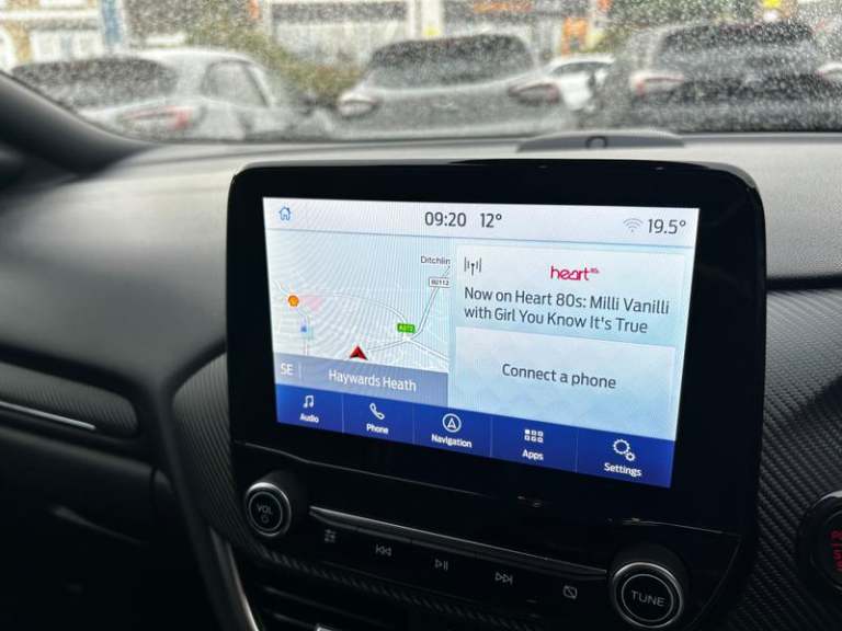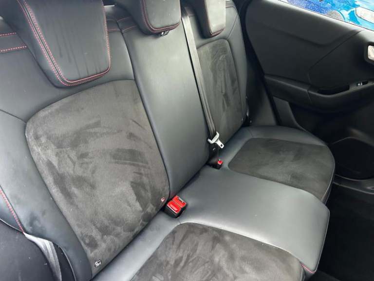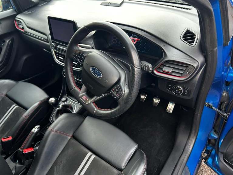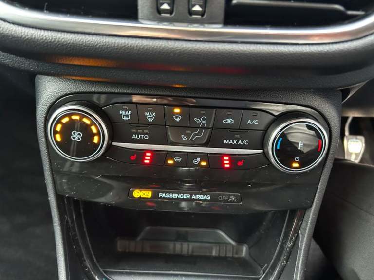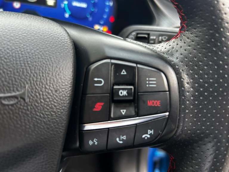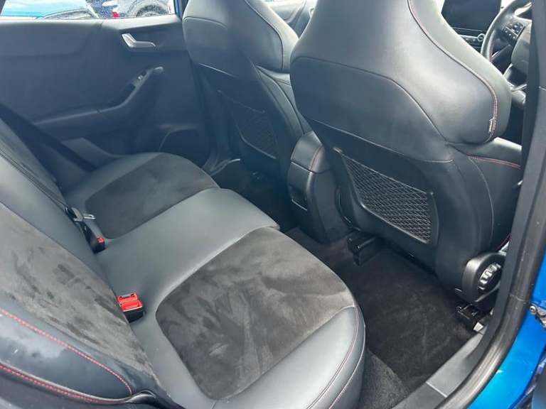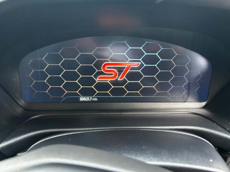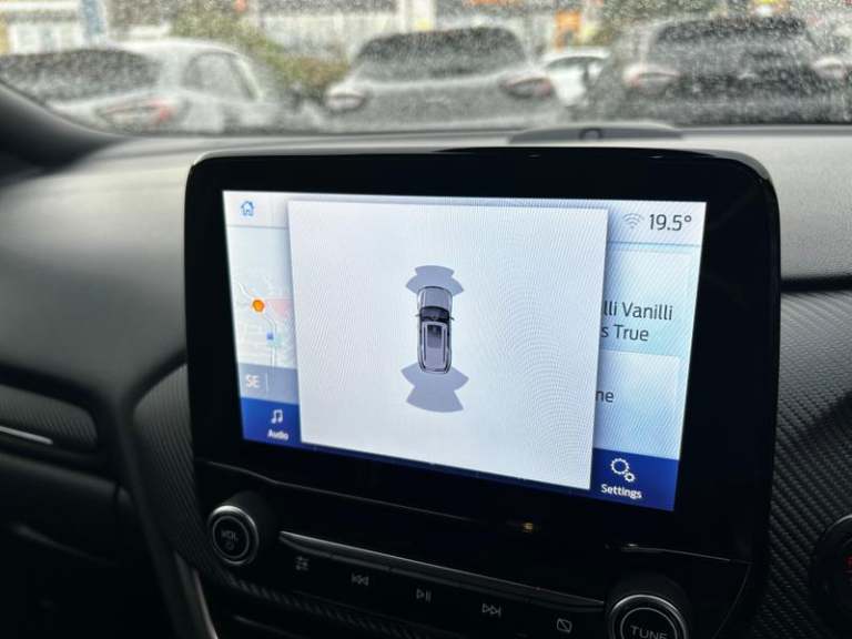 Quickclear heated windscreen, Rear wiper, 3 rear seatbelts, Front and rear head restraints, Third brake light, Front fog lamps, Automatic rain sensing wipers, LED rear lamps, Tyre inflation kit, Red brake calipers, LED daytime running lights, Front and rear parking sensors, Alloy sports pedals, Dual chrome exhaust, Child safety lock, 3 seat bench in 2nd row, Ford easy fuel, Power assist steering, Speed sign recognition, Lane keeping aid with lane departure warning, Tyre pressure monitoring system (TPMS), Cruise control with Intelligent speed assist, B&O Premium Audio system + Ford SYNC 3 navigation pack - Puma, Winter pack - Puma, Thatcham alarm, Carbon look interior deco spears, Privacy glass to side rear windows and tailgate glass, Electronic stability control (ESC) and hill start assist, Front and rear floor mats, Full digital 12.3 instrument cluster, Centre console with armrest and stowage, Ford megabox extended bootspace, Pre collision assist system, Driver impairment monitor, Emergency call service, Engine sound enhancer, Unique ST gear shift knob, ST scuff plates, ST flat bottomed steering wheel with metal grey stitching, ST performance pack - Puma, ST suspension, ST logo projection, 19 5 Spoke magnetite dark finished alloy wheel, Wireless charging pad with electronic air temperature control (EATC), Selectable drive modes (normal, sport, eco, track), Pedestrian/cyclist detection & post-collision braking, Automatic headlights with auto high beam, Power foldable heated