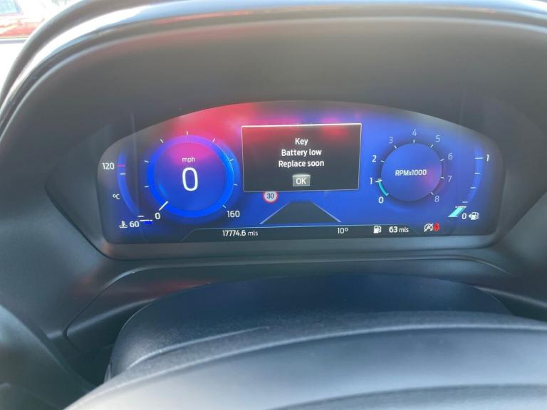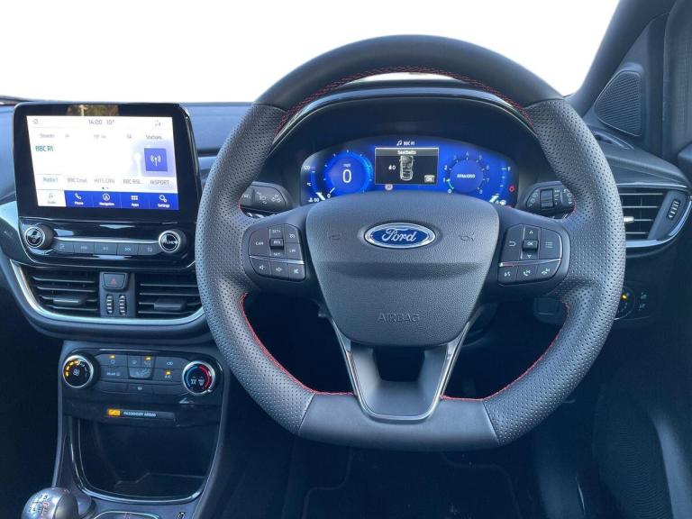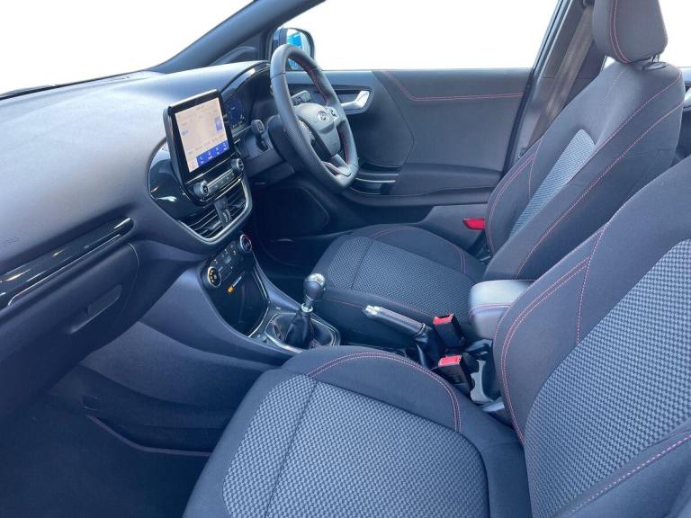 The Ford Puma 1.0 EcoBoost Hybrid mHEV ST-Line 5-door in a striking blue colour, with just 17717 miles on the clock, is a dynamic vehicle designed for efficiency and style. Equipped with advanced features such as automatic headlights and rain-sensing wipers, this car exudes convenience and safety. Inside, the interior boasts a centre console with armrest and ample storage, along with a digital 12.3"" instrument cluster for a modern touch. The ST-Line cloth trim with red stitching and sensico leather steering wheel give the cabin a sporty feel. With a range of safety features like lane-keeping aid, pedestrian/cyclist detection, and pre-collision assist, this Ford Puma ensures a secure driving experience. The 2023 model comes with Ford SYNC 3 navigation pack and selectable drive modes, making every journey enjoyable and connected. Ideal for both city commutes and long drives, this Ford Puma offers a perfect balance of performance and practicality.