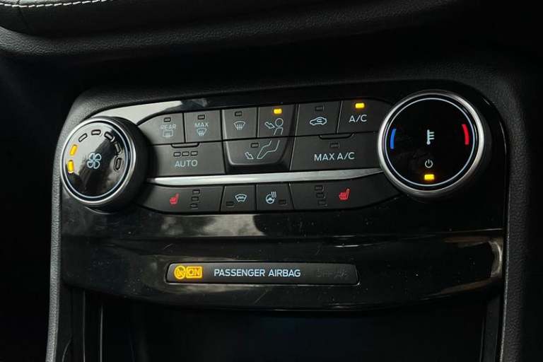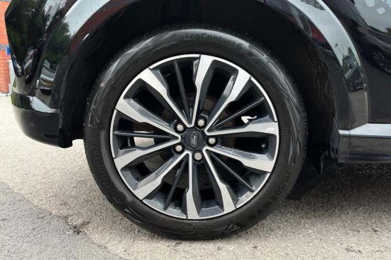 Driver impairment monitor, Emergency call service, Ford easy fuel, Front and rear parking sensors, Full digital 12.3 instrument cluster, Lane keeping aid with lane departure warning, Power assist steering, Selectable drive modes(Normal, sport, Eco, trail, slippery), Speed sign recognition, Automatic headlights with auto high beam, Automatic rain sensing wipers, Bodyside chrome styling, Fixed LED signature headlamps, Front fog lamps, Gloss black with chrome elements on front and rear bumpers, High chrome waistline, LED daytime running lights, LED rear lamps, Power foldable heated door mirrors with puddle lamps and puma logo protection, Privacy glass to side rear windows and tailgate glass, Quickclear heated windscreen, Rear side wing doors, Rear wiper, Third brake light, Vignale body styling kit with unique grille, 3 seat bench in 2nd row, Centre console with armrest and stowage, Ford megabox extended bootspace, Front and rear floor mats, Front and rear head restraints, Manual 4 way driver seat adjust with lumbar adjustment and massage function, Manual 4 way passenger seat adjust with lumbar adjustment and massage function, Premium sensico leather upholstery with metal grey stitching, Premium sensico perforated flat bottomed steering with metal grey stitching, Premium sensico wrapped instrument cluster, Single front passenger seat, Wireless charging pad with electronic air temperature control (EATC), 3 rear seatbelts, Child safety lock, Electronic stability control (ESC)