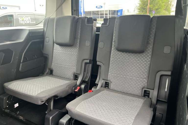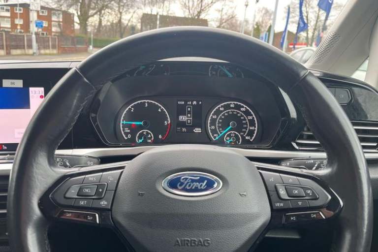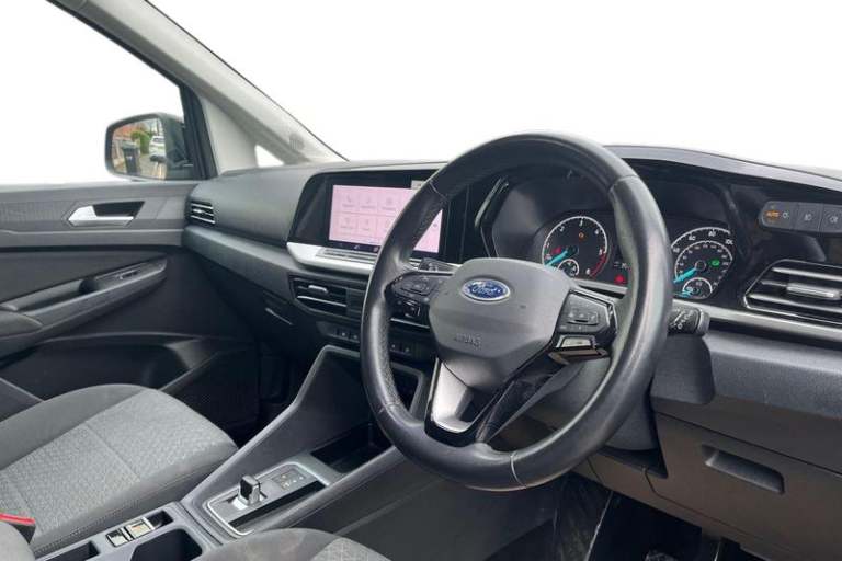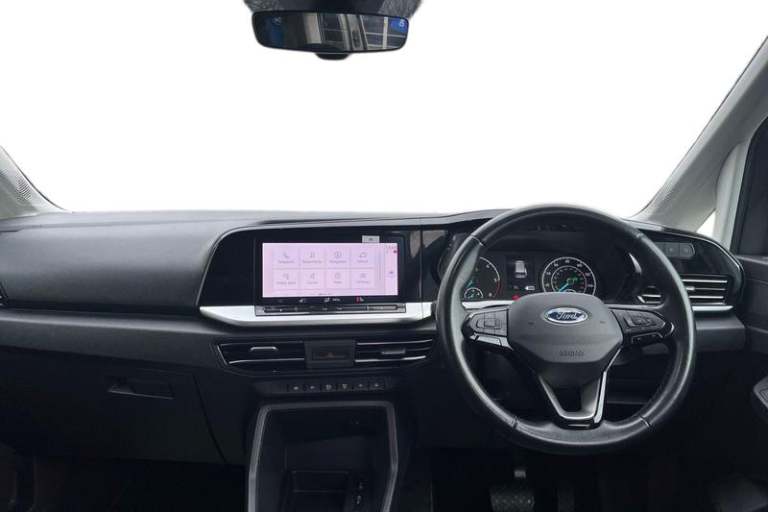 10inch touchscreen infotainment display with volume and temperature slider controls, Android Auto and Apple CarPlay with USB or Wireless Connectivity, Blind spot assist, Brake wear indicator, Cross traffic alert, Driver impairment monitor, E-call, Enhanced digital cluster with navigation integration, FordPass Connect Embedded Modem, Front and rear parking sensors, Front Camera for assistance systems, Lane keeping aid, Mobile phone interface, PAS, Rear view camera, Speed control with ASLD, Stop/start system, Trip computer, Auto headlamps On/off, Automatic windshield wiper, Black coloured exterior mirror finish, Body coloured exterior door handles, Body coloured exterior tailgate handles, Body coloured plastic front bumper, Body coloured plastic rear bumper, Chrome grille and fog lamp surround, Dark tinted rear privacy glass, Daytime running lights, Dual power fold heated mirrors, Dual sliding side load doors, Electric rear window defroster, Electrochromic inside mirror, Fixed 3rd row LHS and RHS window, Fixed rear window, Flip open 2nd row RHS and LHS window, Follow me home headlamps, Front bumper with chrome insert, Front fog lights, High mounted stop lamp, Intermittent variable windshield wiper, Liftgate rear cargo door, Power front windows with 1 touch up/down, Quickclear electric windshield defroster, Rain sensor, Rear registration plate light, Rear window wash/wipe, Roof rack silver painted rails, Standard green glass windscreen, Weather protection seals, 12V socket in luggage