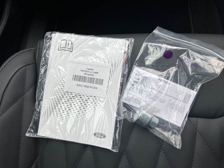 With only one previous owner, this 2024 Ford Capri Extended Range Premium is ready for its next chapter. As an electric vehicle in Premium trim, it comes equipped with a range of features designed for comfort and convenience. Enjoy the ease of Keyless Entry-Start, and benefit from the comfort of Heated Driver and Passenger Seats with Massage Function, along with a 12-Way Power Driver Seat with Memory. Practicality is enhanced with a Retractable Towbar and Dog Guard Bezels for both the first and second rows. You can drive with peace of mind knowing the MOT is valid until November 2027. The Capris impressive capabilities set it apart from other vehicles in its class. Charging is convenient, with a full charge at home taking approximately 11 hours 21 minutes using a 7kW charger. For quicker top-ups, the fastest public charging time from empty to 80% is just 32 minutes. Furthermore, the vehicle can accelerate from 0-62mph in just 6.4 seconds, demonstrating its responsive performance.