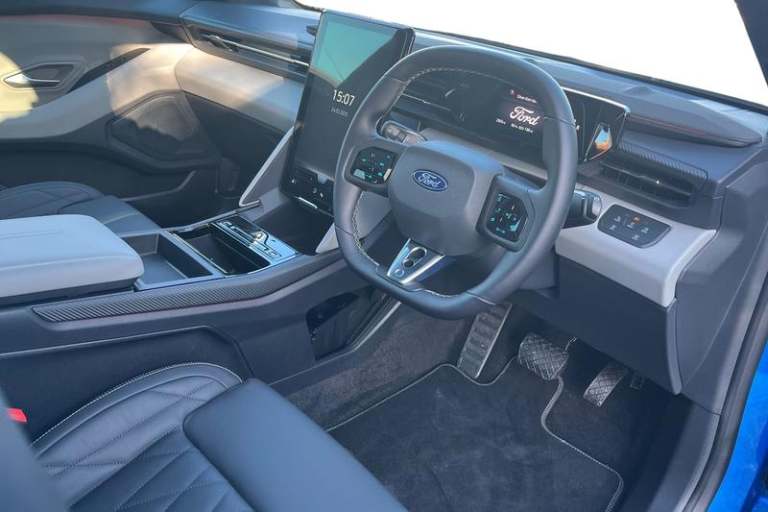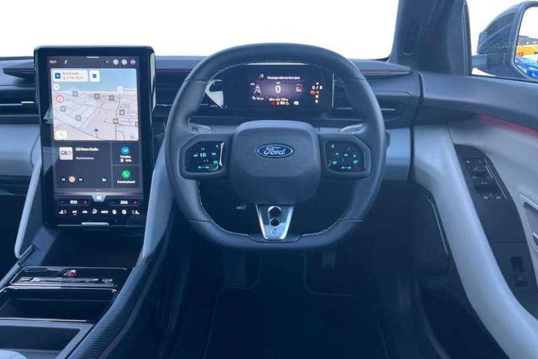 5.3 full digital cluster screen, Electric power steering, Emergency services call system, Hands free power liftgate, Inductive wireless phone charging, Intelligent adaptive cruise control with stop and go, Navigation system, Selectable drive modes, Wrong way alert, Automatic high/low beam, Black door mirrors, Door mirrors with memory function, Exterior mirror with logo puddle lamps, Fixed panoramic glass roof, Glare-free matrix LED headlamps, LED 3rd brake light, LED daytime running lights, LED rear lights, LED tail lamps with ford lettering and Coast-To-Coast applique, Power folding and heated door mirrors, Rear privacy glass, Rear side wing doors, 12 way power driver seat with memory, 3 seat bench in 2nd row, 6 way manual passenger seat adjustments, Driver seat massage function, Dual zone electronic automatic temperature control, Front door scuff plates, Front headrests, Front sport seats, Full sensico upholstery, Heated driver and passenger seats, LED ambient lighting, Pre Conditioning battery and cabin, Rear head restraints, Single front passenger seat, 3 point rear seatbelts, ABS, Child locks on rear doors