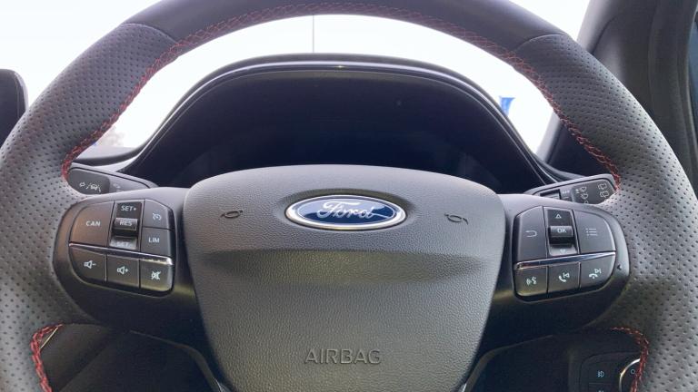 A sporty and stylish supermini that perfectly balances engaging performance, modern technology, and everyday practicality. Powered by Ford’s 1.0 litre EcoBoost petrol engine, it delivers responsive acceleration, excellent fuel economy, and low running costs, making it ideal for city commuting, longer journeys, and daily driving alike. The ST-Line specification adds a sporty edge with distinctive body styling, alloy wheels, rear spoiler, and a well finished interior featuring sports seats and driver-focused detailing. Technology is well catered for with a touchscreen infotainment system offering Apple CarPlay and Android Auto, Bluetooth connectivity, digital driver display, cruise control, and air conditioning, ensuring comfort, convenience, and connectivity on every drive. Inside, the cabin is thoughtfully designed with supportive seating, quality materials, and intuitive controls, while the five door layout offers practical rear access and a versatile boot suitable for everyday needs. On the road, the Fiesta impresses with sharp, agile handling, precise steering, and a composed ride, delivering a confident and enjoyable driving experience. Safety is comprehensive, with multiple airbags, stability control, lane keeping assist, and driver assistance features providing peace of mind. Well maintained and attractively presented, this Ford Fiesta ST-Line combines sporty styling, modern technology, and reliable performance in a stylish and efficient hatchback.At Vertu Motors Ford Bolton all our vehicles come fully prepared to the highest standard with our peace of mind Main Dealer Guarantee. This includes having any tyre replaced that has less than 3mm tread depth (legal limit is 1.6mm), minimum 6 months MOT and at least 6 months or 6,000 miles till your next service. All the cars that we offer are HPI clear (to check there is no outstanding finance or prior accidents) and we do a full Government VOSA report check to verify the mileage. Nationwide delivery is available on all our vehicles, so call today to arrange a test drive..Metallic Paint, Cruise Control, Alloy Wheels, DAB Radio, Bluetooth, Stop Start, Heated Front Windscreen, Low Mileage, Full Service History, USB, Apple-Android Play, Rear Camera& Auto Lights, Premium floor mats, Quickclear heated windscreen, Electric front windows/one touch facility, Rear privacy glass, Rain sensing wipers and auto dimming rear view mirror, Rear wiper, Electric rear windows, Electronic stability control with hill start assist, Sports suspension, Electric power steering, Rear parking distance sensors, Driver alert system, Selectable drive modes (Normal, Sport, Track), Lane keep assist, Speed limiter, Lane keeping aid, Ford easy fuel, Trip computer, Wireless charging, 4.2"" Colour TFT Ice blue illumination analogue cluster, Body coloured electrically operated with side indicators, Body colour bumpers, Body colour large rear spoiler, Rear side wing doors, Unique ST-Line grille, full bodystyling kit and large body coloured rear spoiler