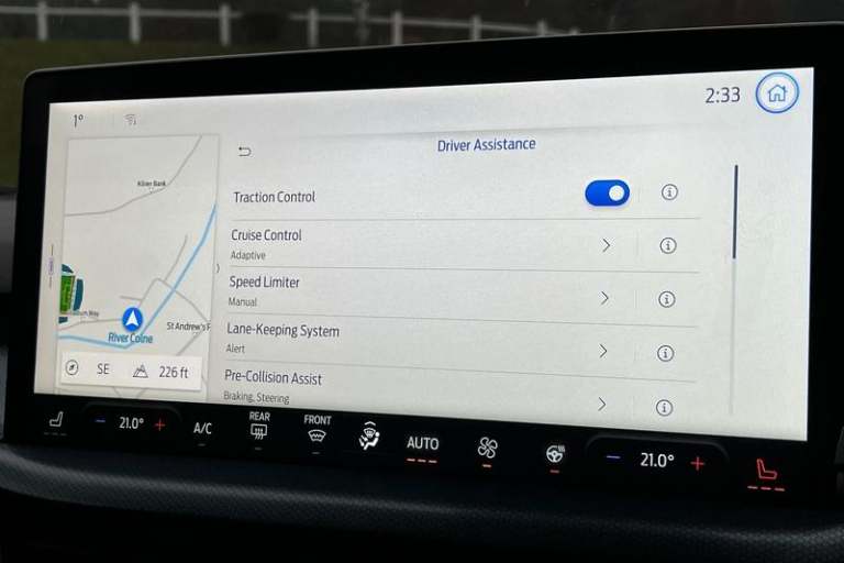 12.3 Digital instrument cluster, Bluetooth system, Digital clock, Easy fuel capless refuelling system, Eco mode, Ford SYNC4 Nav with 13.2'' touchscreen, DAB, Emergency Assistance, Apple Carplay & Android Auto, B&O Premium Audio with 10 speakers, FordPass Connect, Lane keeping system - lane keeping alert and lane keeping aid, PAS, Rev counter, Selectable drive mode, Service interval indicator, Trip computer, Wireless charging pad, Auto headlamps (on/off), Body coloured door handles, Electrically operated front and rear windows with one touch opening and closing, Electrically operated heated power fold door mirrors with puddle lamp with side indicators, Front variable intermittent wipers with electric wash, Heated rear window, LED daytime running lamp, LED rear lamps, LED third brake light, Polished twin tailpipe, Privacy glass, Quickclear heated windscreen, Rain sensor, Rear side wing doors, Rugged body styling kit with active front wing badges, Tailgate wash/wipe, 3 rear headrests, 3 seat bench in 2nd row, Dual zone electronic air temperature control, Full sensico premium upholstery, Height adjustable front headrests, Isofix child seat preparation, Load through ski hatch, Manual 4-way passenger seat adjusts, Power 4-way driver seat adjust, with power lumbar adjust, Reach + rake adjustable steering column, Single front passenger seat, 3x3 point rear seatbelts, ABS+Electronic Brake force Distribution, Auto hold function, Driver airbag, EDL traction control, Electronic parking
