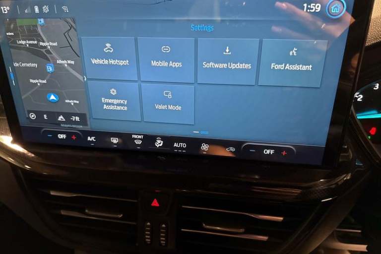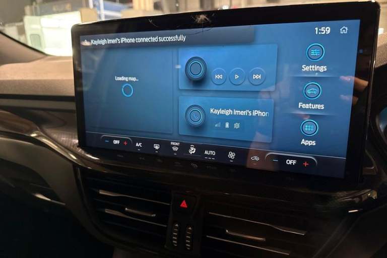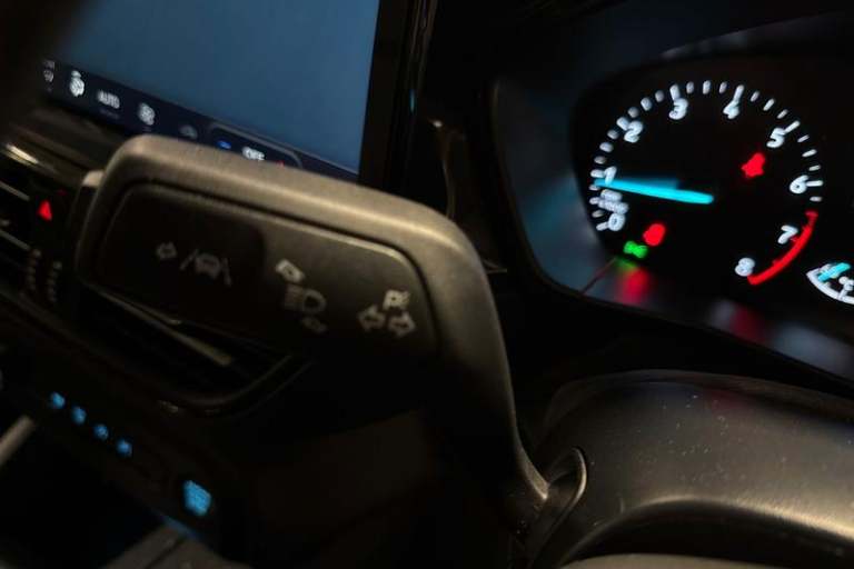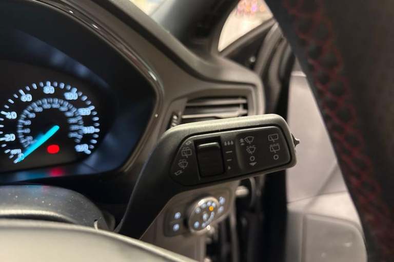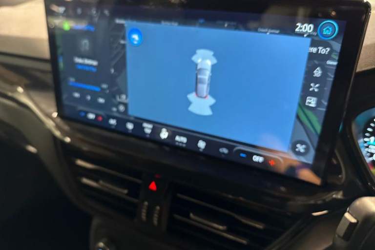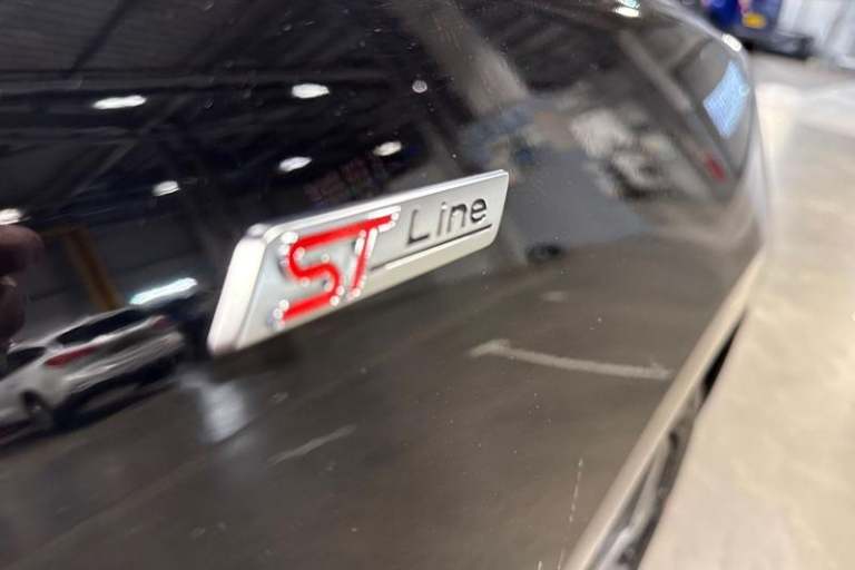4.2 Colour TFT Ice blue illumination analogue cluster with trip computer, Bluetooth system, Digital clock, Easy fuel capless refuelling system, Eco mode, Ford SYNC 4 Navigation with 13.2'' touchscreen, DAB radio, Emergency Assistance, Apple Carplay & Android Auto, 6 speakers & FordPass Connect, Lane keeping system - lane keeping alert and lane keeping aid, PAS, Rev counter, Selectable drive mode, Service interval indicator, Auto headlamps (on/off), Body coloured door handles, Electrically operated front and rear windows with one touch opening and closing, Electrically operated heated power fold door mirrors with puddle lamp with side indicators, Front variable intermittent wipers with electric wash, Full fixed LED headlamps, Heated rear window, LED daytime running lamp, LED rear lamps, LED third brake light, Polished twin tailpipe, Privacy glass, Quickclear heated windscreen, Rain sensor, Rear side wing doors, Tailgate wash/wipe, Unique ST-Line grille, full bodystyling kit, and large body coloured rear roof spoiler, 3 rear headrests, 3 seat bench in 2nd row, Cloth upholstery, Dual zone electronic air temperature control, Height adjustable front headrests, Isofix child seat preparation, Manual 2-way passenger seat adjust, Manual 4-way driver seat adjust, with manual lumbar adjust, Reach + rake adjustable steering column, Single front passenger seat, 3x3 point rear seatbelts, ABS+Electronic Brake force Distribution, Auto hold function, Driver airbag, EDL traction control,