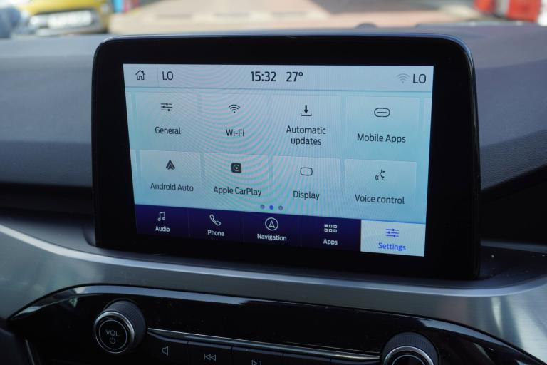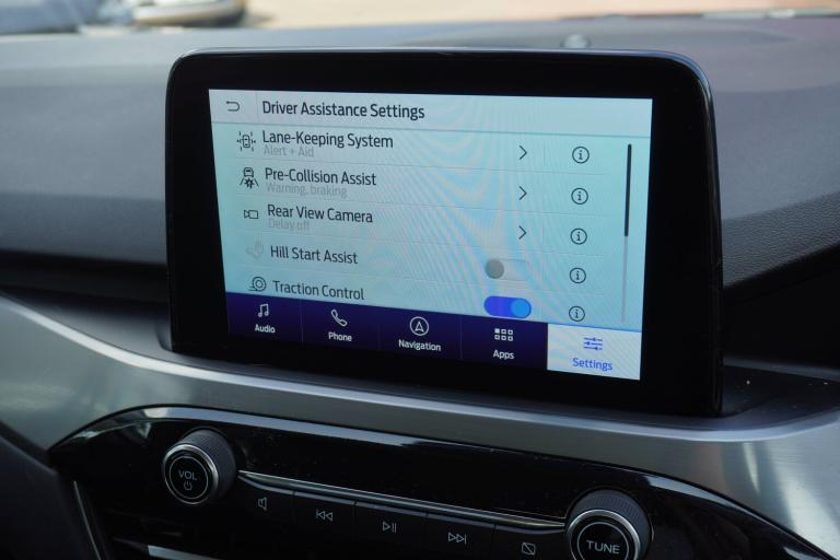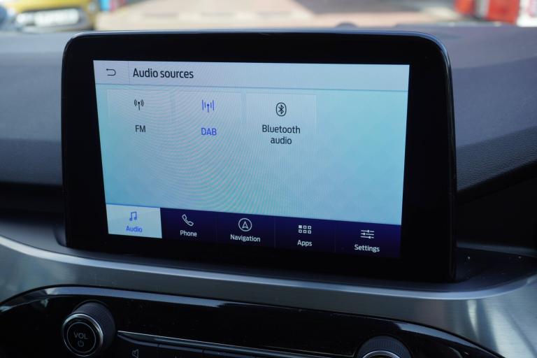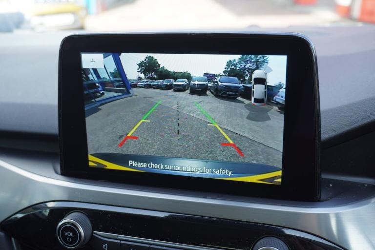 3x3 point rear seatbelts, Airbags - front driver/passenger, front and rear curtain, Drivers knee airbag, Electronic stability control (ESC) and ABS, Ford MyKey Gen 2 safety system, Manual child proof rear door locks, Post collision braking, Pre collision assist with autonomous emergency braking, Rear seat Occupancy alert, Tyre pressure monitoring system, Cruise control with adjustable speed limiter, Ford easy fuel, Front and rear parking sensors, Hands free power tailgate, Lane keeping aid with lane departure warning, Power assist steering, Rear view camera, Selectable drive modes, Service interval indicator, Auto dimming rear view mirror, Auto headlamps with high and low beam, Body colour bumpers, Front LED fog lamps, Full LED headlamps, LED daytime running lights, LED rear lights, Power folding, electrically adjustable and heated door mirrors with puddle lights, Power front/rear windows with global close, Quickclear heated windscreen, Rain sensing wipers, Rear privacy glass, Rear side wing doors, Rear spoiler, Rear wiper, Silver roof rails, Solid paint, Third brake light, Twin exhausts, 10 way power adjustable drivers seat, 2nd row sliding seats with 60, 8 way manual passenger seat including lumbar support and height adjust, Ambient lighting, Centre console with electronic parking brake, Electronic automatic temperature control (EATC), Front and rear floor mats, Front and rear head restraints, Partial premium touch Sensico with black cloth inserts, Rear centre head restraint, Single front passenger seat, Sports seats, Standard suspension, Twist beam rear suspension, Engine immobiliser, Keyless entry and Ford power start button, Locking wheel nuts, Remote powered central double locking doors, Thatcham category 1 alarm, BandO premium audio system with 10 speakers and subwoofer, 2 USB ports, DAB radio/CD, Tyre inflation kit