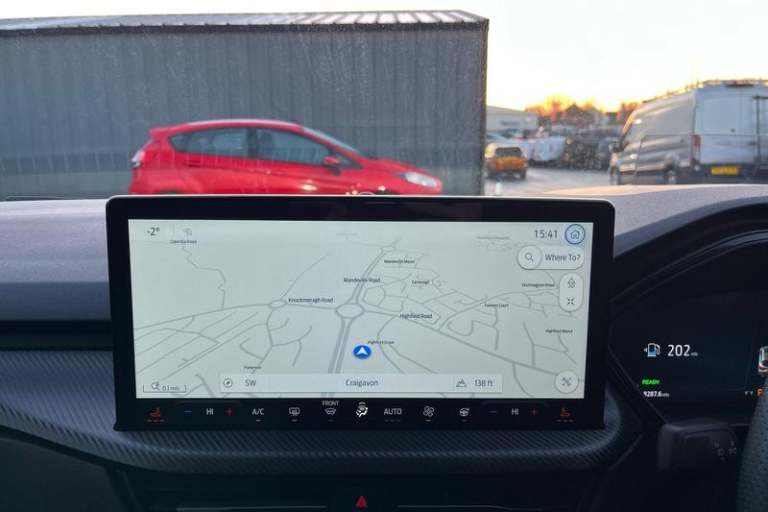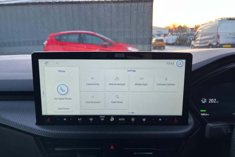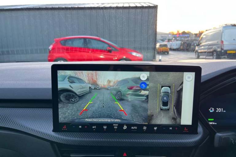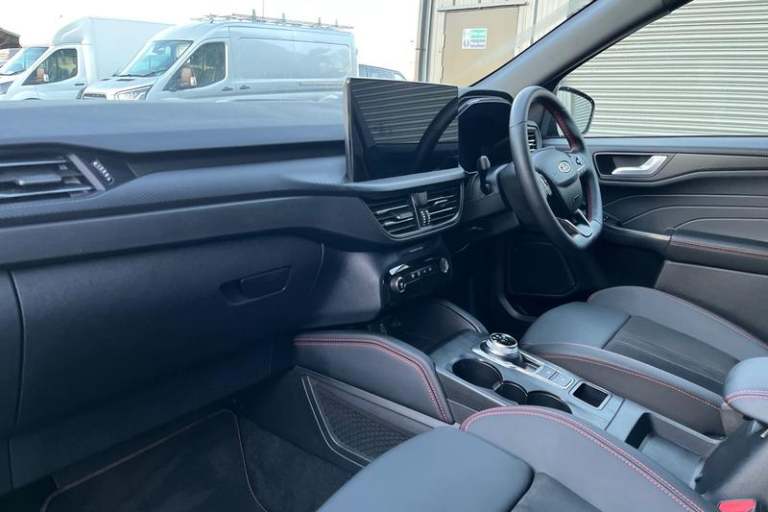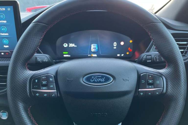 12.3 digital colour instrument cluster, 360 degree view camera, Clear exit assist, Cross traffic alert with active braking, e-Call (emergency call), Ford easy fuel, Ford SYNC 4 Navigation with 13 touchscreen, DAB radio, emergency assistance, Andriod Auto/Apple CarPlay, 5G modem & Ford Pass connect, Front and rear parking sensors, Hands free power tailgate, Lane centering assist, Lane keeping aid with lane departure warning, Power assist steering, Selectable drive modes, Service interval indicator, Auto headlamps with high and low beam, Black roof rails, Body colour bumpers, Front LED fog lamps, Large rear spoiler, LED daytime running lights, LED rear lights, LED third brake light, Pop out door edge protectors, Power front/rear windows with global close, Power heated folding door mirrors with puddle lights, memory function and camera, Power opening panoramic roof, Quickclear heated windscreen, Rain sensing wipers, Rear privacy glass, Rear side wing doors, Rear wiper, ST-Line body styling kit, 2nd row sliding seats, Electronic automatic temperature control (EATC), Front and rear head restraints, Partial premium touch sensico upholstery, Rear centre head restraint, Single front passenger seat, Sports seats, 3x3 point rear seatbelts, Airbags - front driver/passenger, front and rear curtain, Drivers knee airbag, Dynamic brake support, Electronic stability control (ESC) and ABS, Evasive steering assist, Ford MyKey Gen 2 safety system, Manual child proof rear door locks, Pre