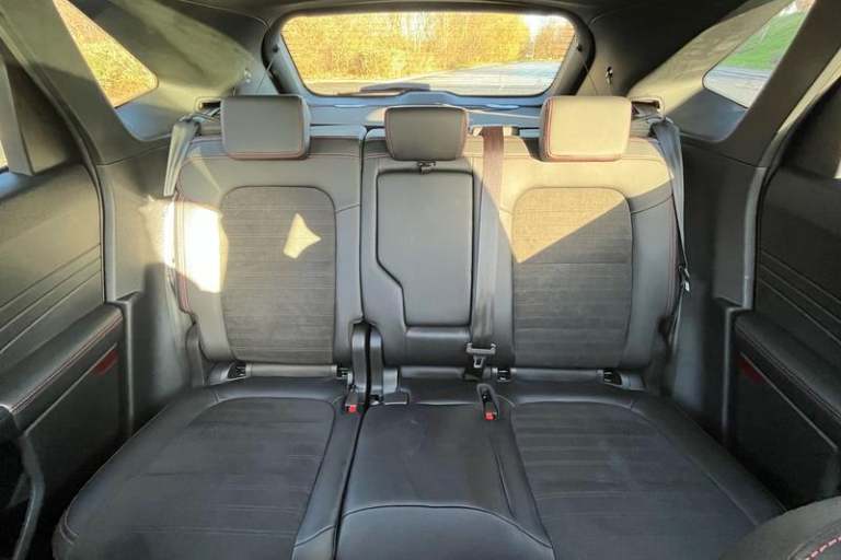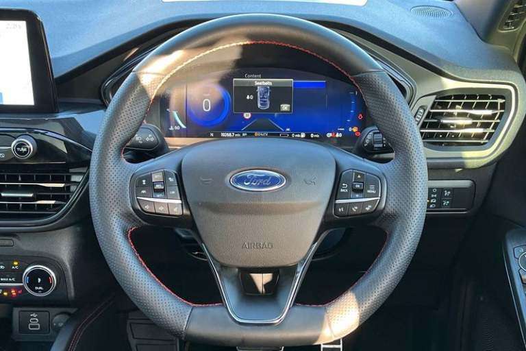 12.3 digital colour instrument cluster, Ford SYNC 3 with 8 TFT LCD touchscreen, App Link, andriod auto/apple carPlay, emergency assistance and navigation with Ford pass connect, Front and rear parking sensors, Hands free power tailgate, Lane keeping aid with lane departure warning, Power assist steering, Rear view camera, Selectable drive modes, Black roof rails, Exclusive paint, Large rear spoiler, LED daytime running lights, LED rear lights, Power folding heated door mirrors with puddle lights, Power front/rear windows with global close, Power opening panoramic roof, Quickclear heated windscreen, Rear privacy glass, Rear side wing doors, Rear wiper, Third brake light, 2nd row sliding seats with 60:40 split, Electronic automatic temperature control (EATC), Front and rear head restraints, Heated passenger and driver seats, Heated rear seats, Heated steering wheel, Partial premium touch Sensico with black cloth inserts and red stitching, Single front passenger seat, 3x3 point rear seatbelts, Electronic stability control (ESC) and ABS, Manual child proof rear door locks, Post collision braking, Pre collision assist with autonomous emergency braking, Red brake calipers