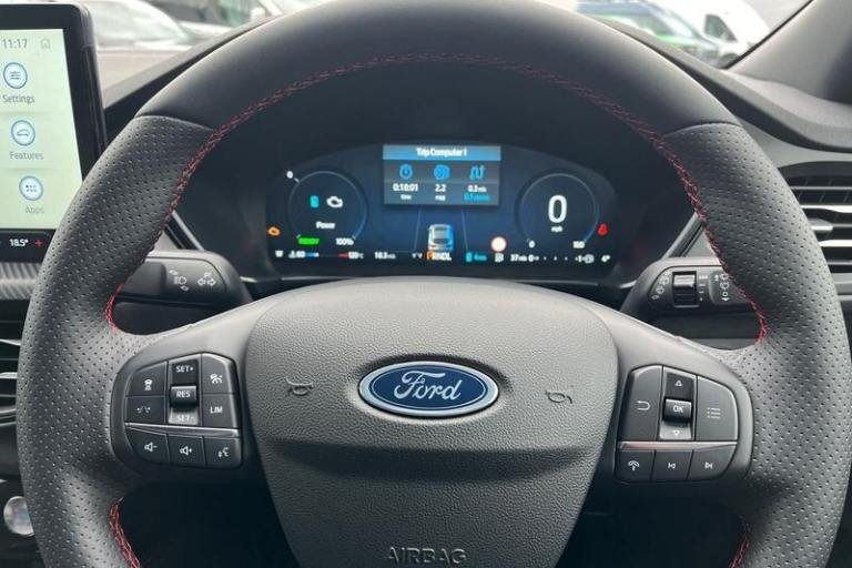 12.3 digital colour instrument cluster, 360 degree camera, e-Call (emergency call), Ford easy fuel, Ford SYNC 4 nav with 13 touchscreen, DAB radio, emergency assistance, andriod auto/apple carPlay, 5G modem & Ford pass connect, Front and rear parking sensors, Hands free power tailgate, Lane centering assist, Lane keeping aid with lane departure warning, Power assist steering, Selectable drive modes, Service interval indicator, Auto headlamps with high and low beam, Black roof rails, Body colour bumpers, Front LED fog lamps, Large rear spoiler, LED daytime running lights, LED rear lights, Pop out door edge protectors, Power front/rear windows with global close, Power heated folding door mirrors with puddle lights, memory function and camera, Quickclear heated windscreen, Rain sensing wipers, Rear privacy glass, Rear side wing doors, Rear wiper, ST-Line body styling kit, Third brake light, 12 way ergonomic power adjust driver's seat with memory (AGR certified), 12 way ergonomic power adjust passenger seat (AGR certified), 2nd row sliding seats, Electronic automatic temperature control (EATC), Front and rear head restraints, Partial premium touch sensico upholstery, Rear centre head restraint, Single front passenger seat, Sports seats, 3x3 point rear seatbelts, Airbags - front driver/passenger, front and rear curtain, Drivers knee airbag, Dynamic brake support, Electronic stability control (ESC) and ABS, Evasive steering assist, Ford MyKey Gen 2 safety system, Manual child