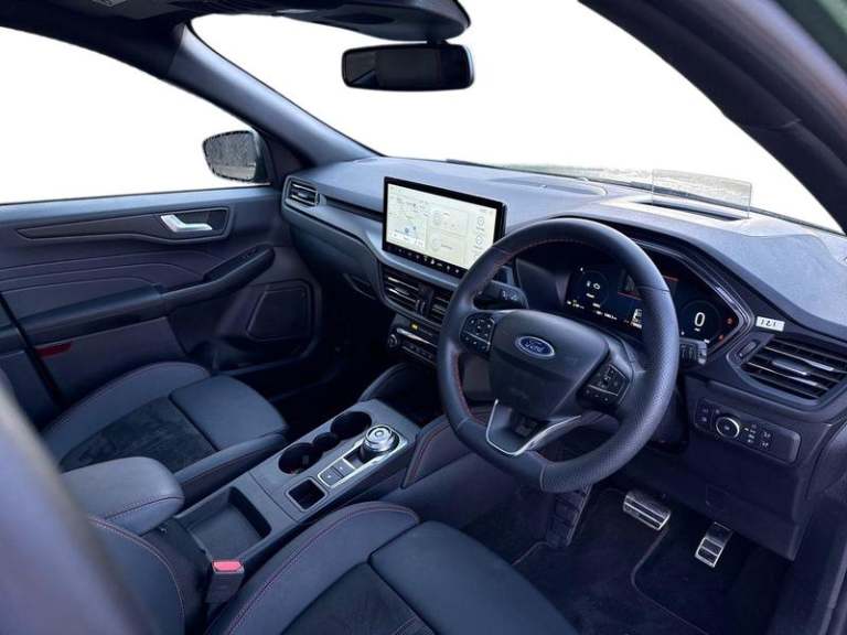 12V Power Point in Floor Console, 12v Power Point in Cargo Area, 12v Socket - Voltage Regulator, Ford SYNC 4 Navigation, eCall, 360 Degree Camera, Acoustic Vehicle Alert System - AVAS, Adaptive Cruise Control, Front and Rear Parking Sensors, Pre-Collision Assist with Autonomous Emergency Braking, Selectable Drive Modes, Trip Computer, Tyre Pressure Monitoring System, 19in Alloy Wheels - ST-Line- Ebony Black - Machined Finish, Aluminium - Finish Front Scuff Plates with ST-Line Script, Black Roof Rails, Dual Exhaust Tailpipes with Unique Brushed Stainless Steel Finish, Exterior Door Handles - Body Coloured, Front Windows - Laminated Glass, Front and Rear Bumper - Sporty Body Colour with Rear Ebony High-Gloss Insert, Heated and Power Folding Door Mirrors - Puddle Lights - Memory Function - Camera, Kuga Badge, Large Rear Spoiler, Locking Wheel Nuts, Lower Bodyside Moulding - Body Colour, Power Opening Panoramic Roof, Quickclear Heated Windscreen, Rear Privacy Glass, Red Brake Calipers, Rocker Panel Mouldings - Body Colour - ST-Line Design, ST-Line Badge on Left and Right Side Wings, ST-Line Bodystyling Kit, ST-Line Front and Rear Bumper Moulding - Body Colour, Tailgate Badge - PHEV - Plug-In-Hybrid, Tailgate Handle - Body Colour, Tow Hooks - Front and Rear, Tyre Inflation Kit, Windows - Power Front and Rear with Global Closing, Full LED Headlamps, Headlights - Automatic Follow Me Home Lighting, Headlights - Automatic High Beam Assist, Headlights - Levelling System - Manual, Headlights