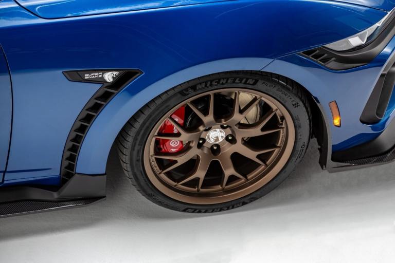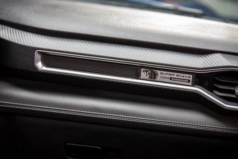 .Shelbys new Super Snake Mustang ushers in a new era of automotive excitement, boasting a range of thrilling features designed to redefine performance for the next generation S650 Mustang. With a striking all-new look, this iteration of the Super Snake stands out as the most engineered and driver-focused production model to date. Its heart-pounding performance is driven by an impressive 830+ horsepower supercharged V8 engine*, meticulously calibrated to deliver exhilarating power and performance. Key features of the Super Snake Mustang elevate its performance to new levels. The vehicles focus on air management and cooling ensures optimal performance in even the most demanding driving conditions. Lightweight magnesium alloy wheels contribute to enhanced agility and responsiveness, while the use of advanced materials such as carbon fiber reduces weight and improves overall performance. With meticulous attention to detail, every aspect of the Super Snakes design is crafted to maximize performance and driving enjoyment. For enthusiasts eager to experience the thrill of owning a Super Snake Mustang, act quickly as production will be limited to just 250 units in the United States, with limited availability worldwide for the 2024 model year.Performance, 830+ horsepower supercharger system (Black), SHELBY extreme cooling system (radiator, heat exchanger), SHELBY by Borla exhaust system, Upgraded performance half shafts rated up to 1,500 HP, Short throw shifter (manual only), One-piece drive shaft (manual only), Hardened extended wheel studs, SHELBY suspension system, 20 forged magnesium wheels, SHELBY performance spec tires, SHELBY brake rotor upgrade, Exteriors, Aluminum Super Snake hood, Hood pin locks, Carbon fiber hood extractors, Carbon fiber Wide Body front fenders, Front fender vents, Wide Body front fascia assembly: Upper, lower, outboard grilles, Lower front splitter, Front splitter supports, Carbon fiber splitter wickers, Side rocker assembly, Carbon fiber rocker wickers, Rear ducktail spoiler, Carbon fiber Super Snake rear wing (coupe only), Carbon fiber rear lower diffuser, Super Snake striping and badging, Tinted windows (Per State Regulations), Interiors, SHELBY spec interior upgrade, Embroidered floor mats, Shelby shifter ball (manual only), Cobra puddle lamps, Super Snake door sill plates, Serialized dash plaque, Serialized engine plaque, Engine cap set, Convertible light bar (convertible only)