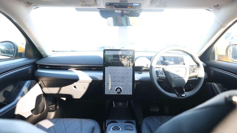 .The Ford Mustang Mach-E 198kW Select is where iconic Mustang attitude meets modern all-electric refinement. With its 72kWh battery and smooth single-motor rear-wheel-drive setup, it delivers instant torque, effortless acceleration and that uniquely calm EV driving feel. Whether youre gliding through town on one-pedal drive or stretching its legs on the motorway, the Mach-E feels poised, responsive and seriously fun. Inside, its a tech lovers dream. The huge 15.5'' SYNC 4A touchscreen puts everything at your fingertips wireless Apple CarPlay/Android Auto, built-in navigation, FordPass Connect, DAB radio and full voice control. A crisp 10.2'' digital cluster keeps the essentials clear, while the wireless charging pad and USB ports front and rear keep every device powered. Intelligent adaptive cruise control with stop & go and lane-centring transforms long journeys into laid-back cruising. Comfort is top-tier too. Heated front seats, a heated steering wheel, dual-zone climate control and premium Sensico artificial leather give the cabin a sleek, modern feel. Practicality is excellent thanks to generous space in the rear and the added bonus of a front trunk for extra storage. From the outside, the Mach-E commands attention. LED Mustang signature tail lights, LED reflector headlamps, a bold brace-style grille, privacy glass and those stealthy black 19'' alloys with aero covers give it a look thats both muscular and futuristic. Black power-fold mirrors even project the Mustang logo puddle light a small detail that makes every unlock feel special. Safety and confidence come baked in. BLIS with cross-traffic alert, forward collision warning, evasive steering assist, pre-collision assist with mitigation, automated emergency braking, lane-keeping aid and a full 360 camera system all work together to keep every journey protected. The E-Latch keyless entry with keypad access adds real everyday convenience, backed by a Thatcham Cat.1 alarm. Charging is easy with both home and public cables included, plus support for 11kW AC charging and up to 150kW rapid charging when you need a quick top-up. The Mach-E Select blends performance, presence and practicality into a genuinely exciting electric SUV perfect if you want Mustang spirit with zero emissions and maximum modern tech..10.2'' digital insturment cluster, 360 degree camera, Active park assist, Applink remote control system, BLIS (Blind Spot Information System) with cross traffic alert, Distance alert and