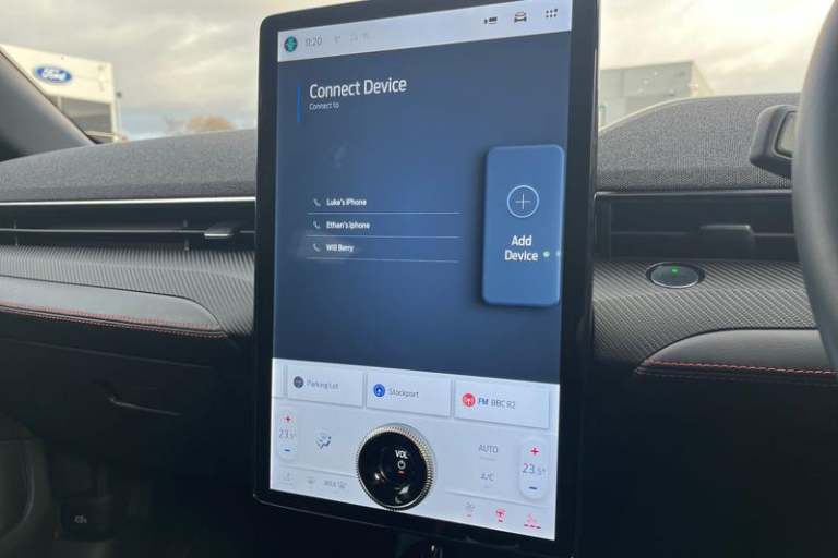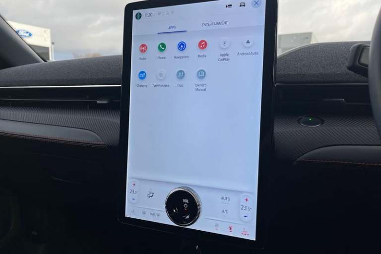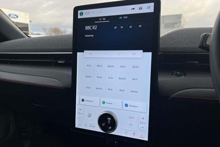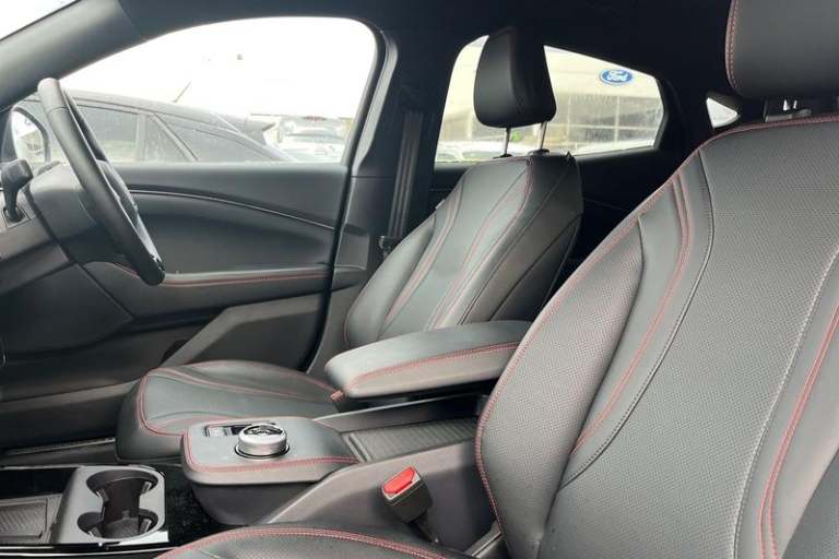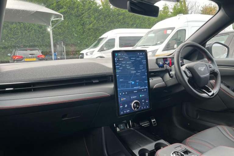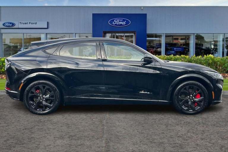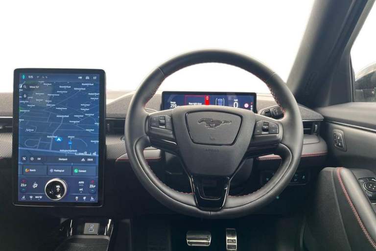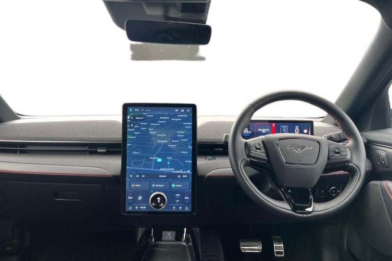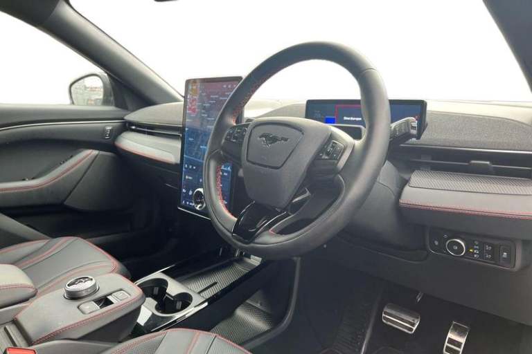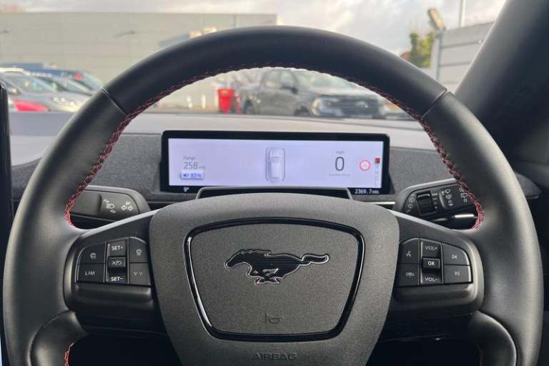 10.2 digital insturment cluster, 360 degree camera, Applink remote control system, BLIS (Blind Spot Information System) with cross traffic alert, Distance alert and indication system, Electric power steering, Emergency services call system, Ford SYNC4A with 15.5Touch, DAB radio, Emer assist, Wireless carplay androidauto, 2 front, rear USB ports, 6 speakers, FordPass connect, Connected naviation, Front and rear parking sensors, Intelligent adaptive cruise control with stop and go + lane centering, Lane departure warning with lane keeping aid, Selectable drive modes - active, whisper and untamed, Trip computer, Wireless charging pad, Adaptive LED Mustang signature headllamps, Black painted power fold heated mirrors with puddle light mustang logo projection, Blade front grille design, Body colour bumpers, Daytime running lights, LED 3rd brake light, LED Mustang signature tail lights, Quickclear heated windscreen, Rear privacy glass, Rear side wing doors, Rear wiper, Side cladding and wheel arches in piano black, 3 seat bench in 2nd row, 8 way power driver seats with lumbar support, 8 way power passenger seats with lumbar support, Ambient lighting, Dual electronic automatic temperature control, Front headrests, Front trunk, Heated front seats and steering wheel, One pedal drive, Perforated full sensico artificial leather upholstery, Rear head restraints, Single front passenger seat, 3 point rear seatbelts, ABS, Child locks on rear doors, ESP, Evasive steering assist, Pre collision