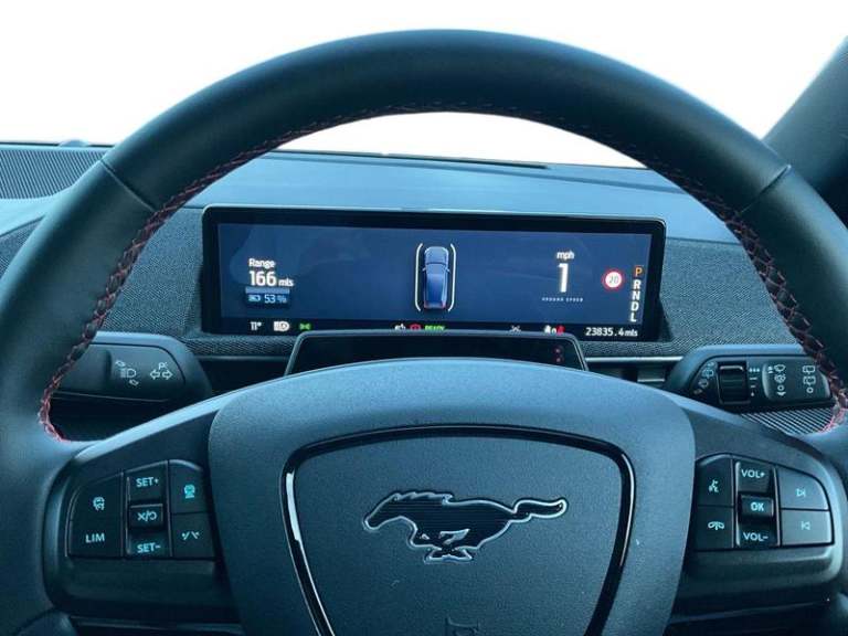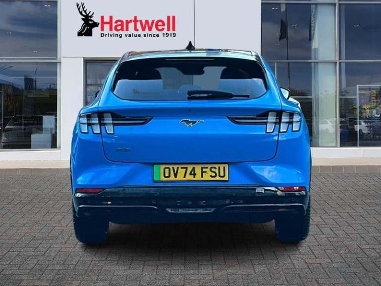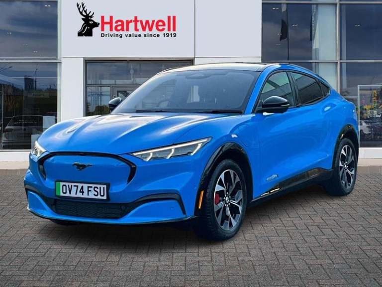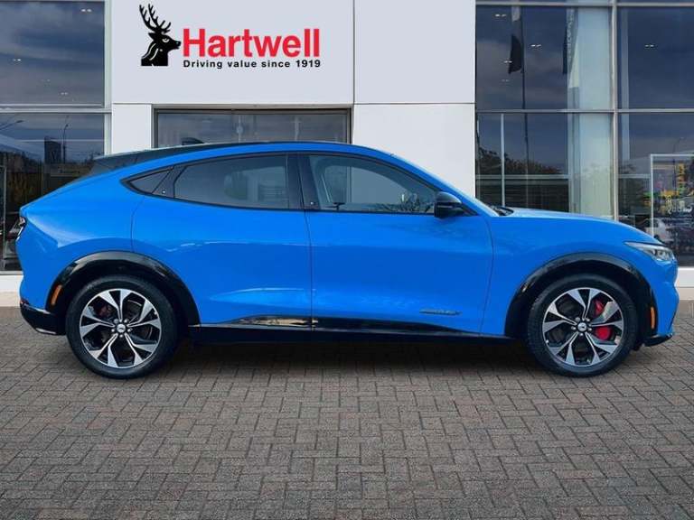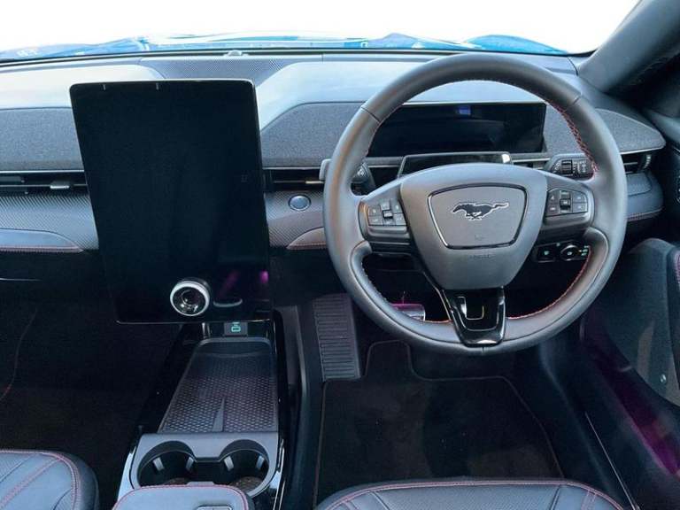 Ford Sync 4A with 15.5in Touchscreen, Wireless Device Charging Pad, 360 Degree Camera, Active Park Assist, BLIS - Blind Spot Information System with Cross Traffic Alert, Front and Rear Parking Sensors, Intelligent Adaptive Cruise Control with Stop-Go and Lane Centering, Pre-Collision Assist, Rear View Camera, Selectable Drive Modes - Active-Whisper-Untamed, 19in Alloy Wheels - Black Machined, Black Powerfold Heated Mirrors with Puddle Light Mustang Logo Projection, Blade Front Grille Design, Body Colour Bumpers, Electric Windows - Front, Fixed Panoramic Roof, Quickclear Heated Windscreen, Rear Privacy Glass, Red Brake Calipers, Side Cladding and Wheel Arches Piano Black, Adaptive LED Mustang Signature Headlamps, LED Mustang Signature Taillights, 10.2in Digital Instrument Cluster, 8-Way Power Driver and Passenger Seats, Air Conditioning - Dual Zone Electronic Automatic Temperature Control, Ambient Lighting, Front Trunk, Hands-Free Tailgate, Heated Steering Wheel, Keyless Start, One Pedal Drive, Seats - Front Heated, Tech Pack Plus, [Paint]Grabber Blue, Power Steering, Universal Home Charging Cable and Public Charging Cable, [Safety and Security]ABS - Anti-lock Braking System, Airbags - Driver and Front Passenger, E-Latch Keyless Entry System including B-Pillar Keypad Access, Lane Keeping Aid with Lane Departure Warning, Thatcham Category 1 Alarm, [Upholstery]Perforated Sensico - Black with Red Stitching