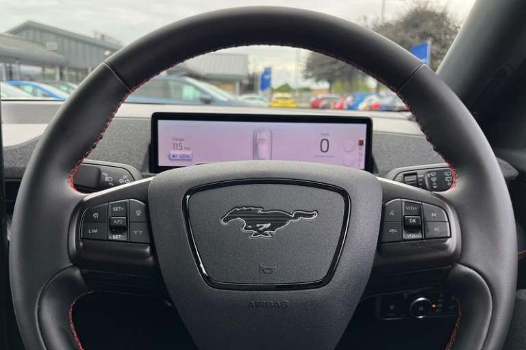 10.2in Digital Instrument Cluster, 19in Alloy Wheels - Black Machined, 360 Degree Camera, 8-Way Power Driver and Passenger Seats, ABS - Anti-lock Braking System, Active Park Assist, Adaptive LED Mustang Signature Headlamps, Air Conditioning - Dual Zone Electronic Automatic Temperature Control, Airbags - Driver and Front Passenger, Ambient Lighting, BLIS - Blind Spot Information System with Cross Traffic Alert, Black Powerfold Heated Mirrors with Puddle Light Mustang Logo Projection, Blade Front Grille Design, Body Colour Bumpers, E-Latch Keyless Entry System including B-Pillar Keypad Access, Electric Windows - Front, Ford Sync 4A with 15.5in Touchscreen, Front Trunk, Front and Rear Parking Sensors, Heated Steering Wheel, Intelligent Adaptive Cruise Control with Stop-Go and Lane Centering, Keyless Start, LED Mustang Signature Taillights, Lane Keeping Aid with Lane Departure Warning, One Pedal Drive, Power Steering, Pre-Collision Assist, Quickclear Heated Windscreen, Rear Privacy Glass, Rear View Camera, Red Brake Calipers, Seats - Front Heated, Selectable Drive Modes - Active-Whisper-Untamed, Side Cladding and Wheel Arches Piano Black, Thatcham Category 1 Alarm, Universal Home Charging Cable and Public Charging Cable, Wireless Device Charging Pad