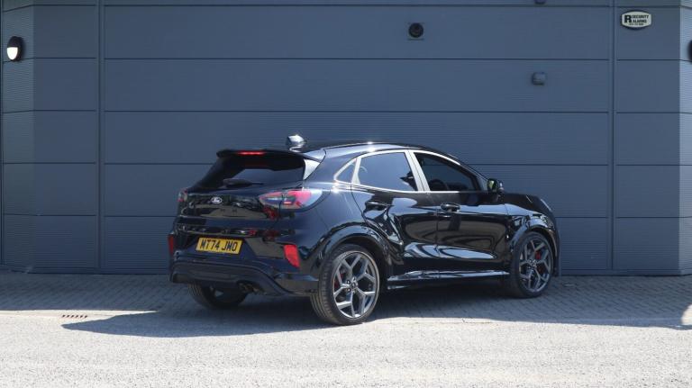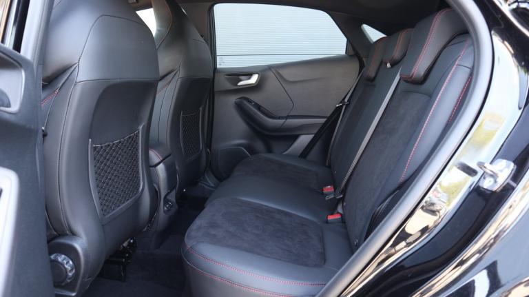 .Ford Puma 1.0 EcoBoost Hybrid mHEV ST 5dr DCT. Driver impairment monitor, Emergency call service, Ford easy fuel, Full digital 12.8'' instrument cluster, Lane keeping aid with lane departure warning, Power assist steering, Power lift tailgate, Selectable drive modes (normal, sport, eco, track), Speed sign recognition, ST suspension, 12'' landscape touchscreen display with wireless apple car play and android auto premium B&O audio system with 10 speakers, Ford pass connect and emergency assistance, Ford SYNC4 with connected navigation, Automatic headlights with rain sensing wipers and auto high beam, Front fog lamps, Glare-free matrix LED headlamps, LED daytime running lights, LED rear lamps, LED third brake light, Power foldable heated door mirrors with puddle lamps and puma logo protection, Quickclear heated windscreen, Rear privacy glass,.Driver impairment monitor, Emergency call service, Ford easy fuel, Full digital 12.8'' instrument cluster, Lane keeping aid with lane departure warning, Power assist steering, Power lift tailgate, Selectable drive modes (normal, sport, eco, track), Speed sign recognition, ST suspension, 12'' landscape touchscreen display with wireless apple car play and android auto premium B&O audio system with 10 speakers, Ford pass connect and emergency assistance, Ford SYNC4 with connected navigation, Automatic headlights with rain sensing wipers and auto high beam, Front fog lamps, Glare-free matrix LED headlamps, LED daytime running lights, LED rear lamps, LED third brake light, Power foldable heated door mirrors with puddle lamps and puma logo protection, Quickclear heated windscreen, Rear privacy glass, Rear side wing doors, Rear wiper, Unique ST body styling kit including wing mirrors and Ford Performance embossed splitter, 3 seat bench in 2nd row, Centre console with armrest and stowage, Electronic automatic temperature control (EATC), Ford megabox extended bootspace, Ford Performance seats premium synthetic leather upholstery, Front and rear head restraints, Front floor mats, Manual 6 way driver seat adjust with lumbar adjustment, Manual 6 way passenger seat with lumbar seat adjustment, Single front passenger seat, ST flat bottomed steering wheel with metal grey stitching, Driver assistance pack with blind spot information system - Puma for automatic transmission, Winter pack - Puma, 3 rear seatbelts, Child safety lock, Electronic stability control (ESC) and hill start assist, Pre-collision assist with autonomous emergency
