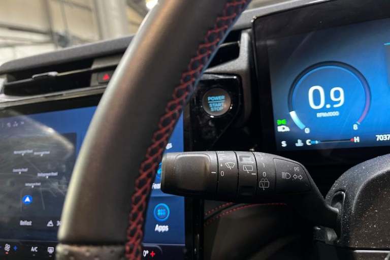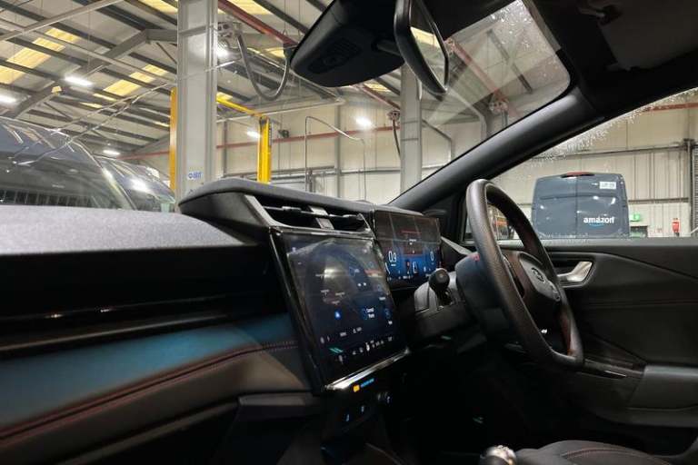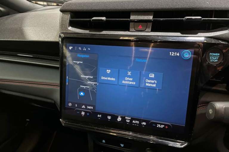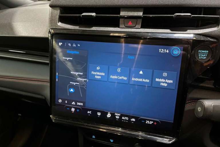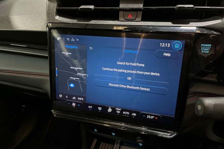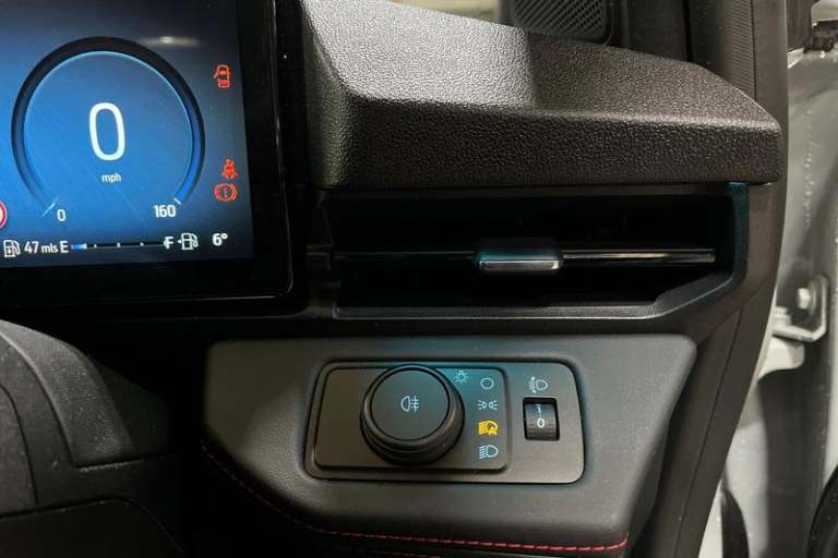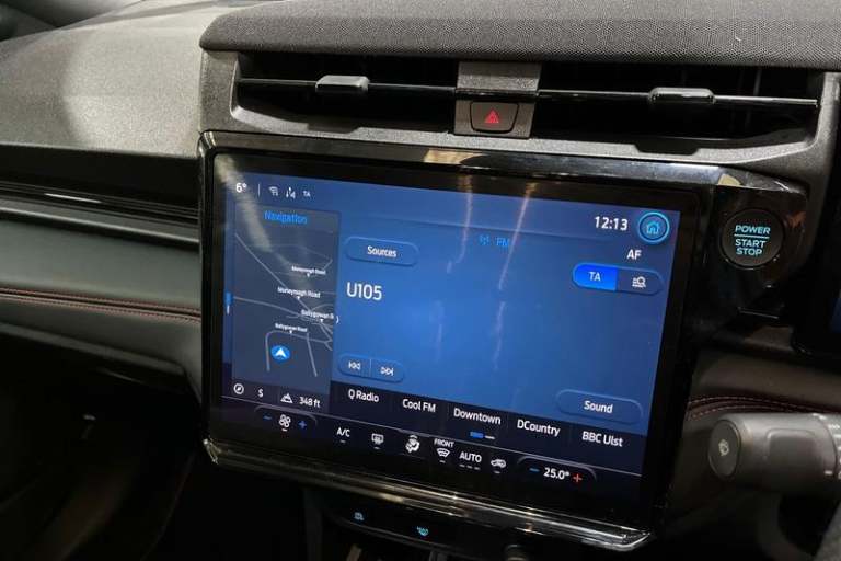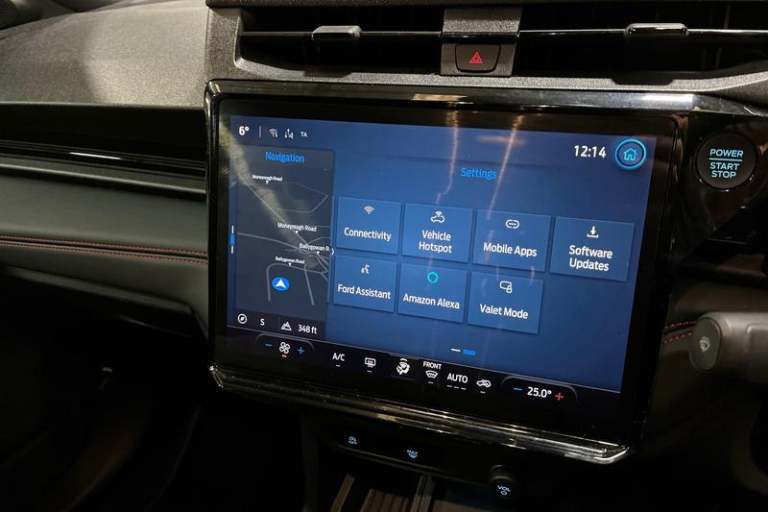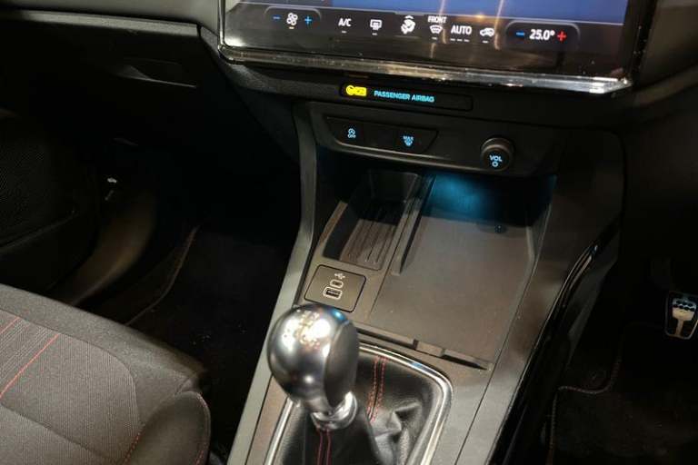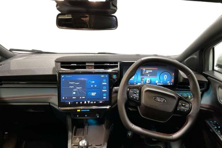 Driver impairment monitor, Emergency call service, Ford easy fuel, Full digital 12.8 instrument cluster, Lane keeping aid with lane departure warning, Power assist steering, Selectable drive modes(Normal, Eco, Sport, Slippery and Trail), Speed sign recognition, Automatic headlights with rain sensing wipers and auto high beam, Front fog lamps, LED daytime running lights, LED rear lamps, LED third brake light, Power foldable heated door mirrors with puddle lamps and puma logo protection, Quickclear heated windscreen, Rear privacy glass, Rear side wing doors, Rear wiper, ST-Line body styling kit with unique grille, 3 seat bench in 2nd row, Centre console with armrest and stowage, Electronic automatic temperature control (EATC), Ford megabox extended bootspace, Front and rear head restraints, Front floor mats, Manual 4 way driver seat adjust with lumbar adjustment, Single front passenger seat, ST- Line cloth trim with red stitching, 3 rear seatbelts, Child safety lock, Electronic stability control (ESC) and hill start assist, Pre-collision assist with autonomous emergency braking, pedestrian/cyclist detection & post-collision braking, Tyre pressure monitoring system (TPMS)