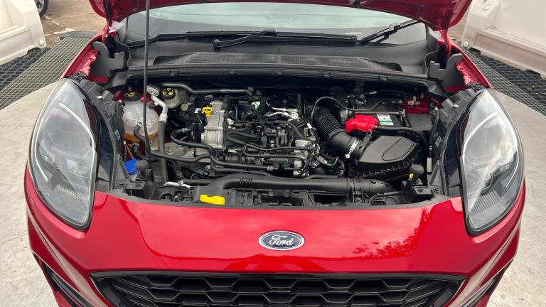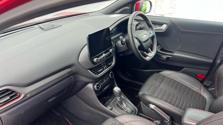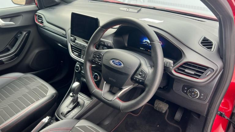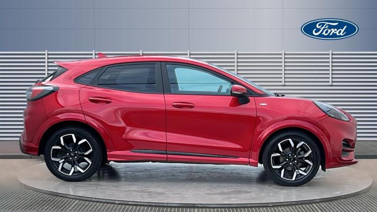 This vibrant Red Ford Puma 1.0 EcoBoost Hybrid mHEV ST-Line X 5dr DCT offers a perfect blend of sporty style, advanced hybrid efficiency, and smart technology, making it an outstanding choice for anyone seeking a dynamic yet practical compact SUV. With 34,254 miles on the clock, this Puma has plenty of life left and benefits from Ford’s renowned build quality and reliability.Powered by the efficient 1.0-litre EcoBoost mild hybrid engine paired with a smooth DCT automatic transmission, this vehicle delivers responsive performance while keeping fuel consumption and emissions impressively low. The ST-Line X trim elevates the Puma’s sporty character, featuring bold exterior styling and premium touches throughout.Inside, the Puma is packed with features designed for convenience and comfort. The built-in satellite navigation system ensures you’ll never lose your way, while the climate control keeps the cabin at the perfect temperature year-round. Enjoy seamless connectivity with DAB radio, Bluetooth, USB ports, and both Apple CarPlay and Android Auto, allowing you to stay connected and entertained on every journey.Safety and ease of use are enhanced with rear parking sensors, making parking in tight spots stress-free, while cruise control adds comfort during longer drives. The Puma sits confidently on eye-catching 18-inch alloy wheels, giving it a stylish, athletic stance that turns heads wherever you go.Whether you’re commuting, running errands, or heading out for a weekend adventure, this Ford Puma offers a fantastic balance of style, technology, and fuel efficiency. Don’t miss your chance to own this well-equipped, sporty hybrid with proven reliability and a striking presence.Contact us today to arrange a test drive and experience the Puma’s impressive capabilities for yourself!.Air Conditioning, Climate Control, Cruise Control, Satellite Navigation, Alloy Wheels, DAB Radio, Bluetooth, Stop Start, Heated Front Windscreen, USB, Keyless Entry-Push Button Start, Apple-Android Play, Auto Lights, Electric Folding Mirrors, Lane Keeping Assist& Rain Sensors, Front floor mats, Quickclear heated windscreen, Rear wiper, Privacy glass to side rear windows and tailgate glass, Automatic rain sensing wipers, Electronic stability control (ESC) and hill start assist, Pedestrian/cyclist detection & post-collision braking, Pre collision Assist system, Sport suspension, Rear parking sensor, Power assist steering, Lane keeping aid with lane departure warning, Speed sign recognition, Driver impairment monitor, Ford easy fuel, Selectable drive modes(Normal, sport, Eco, trail, slippery), Power start button, Full digital 12.3"" instrument cluster, Emergency call service, Power foldable heated door mirrors with puddle lamps, Carbon look interior deco spears