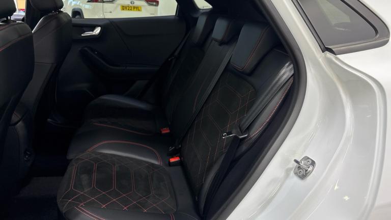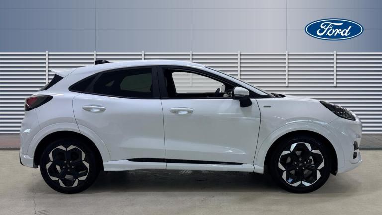 Just arrived at Ford Stoke, this Ford Puma 1.0 EcoBoost Hybrid mHEV ST-Line X 5dr in striking Frozen White delivers standout styling, advanced hybrid efficiency, and a premium driving experience. Powered by Ford's award-winning 1.0 EcoBoost mild-hybrid engine, producing 125PS, the Puma offers lively performance with excellent fuel economy and reduced emissions. The ST-Line X specification enhances its sporty character with distinctive exterior styling, larger alloy wheels, and a confident road presence. Inside, the cabin feels refined and driver-focused, featuring part-leather sports seats, a 12.3 digital instrument cluster, and Ford SYNC infotainment with touchscreen display, satellite navigation, Apple CarPlay, and Android Auto for seamless connectivity. Everyday practicality is a key strength, thanks to the innovative MegaBox storage solution, providing added versatility alongside a generous boot. Advanced driver assistance features including adaptive cruise control, lane keeping aid, rear parking sensors, and traffic sign recognition ensure confidence on every journey. Stylish, efficient, and rewarding to drive, this Ford Puma ST-Line X is perfectly suited to modern lifestyles. Available now at Ford Stoke &65533, contact our team to arrange your test drive..Air Conditioning, Climate Control, Metallic Paint, Cruise Control, Satellite Navigation, Alloy Wheels, DAB Radio, Bluetooth, Parking Sensors, Stop Start, Heated Front Windscreen, Low Mileage, Full Service History, USB, Diamond Cut Alloy Wheels, Rear Camera, Auto Lights, Electric Folding Mirrors& Rain Sensors, Front floor mats, Quickclear heated windscreen, Rear wiper, Rear privacy glass, Pre-collision assist with Autonomous emergency braking, Pedestrian/Cyclist detection & Post-collision braking, Electronic stability control (ESC) and hill start assist, Standard suspension, Power assist steering, Speed sign recognition, Driver alert system, Lane keeping aid, Ford easy fuel, Selectable drive modes(Normal, Eco, Sport, Slippery and Trail), Power lift tailgate, Wireless charger, Wireless charging pad, Emergency call service, Full digital 12.8"" instrument cluster, Power foldable heated door mirrors with puddle lamps and puma logo protection