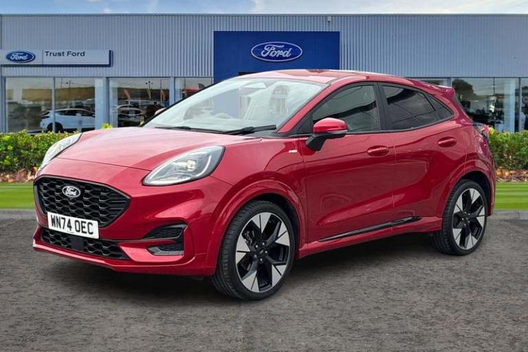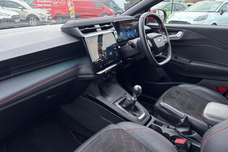 12in Landscape Touchscreen Display - Wireless Apple CarPlay and Android Auto - Premium B&O Audio System 10 Speakers - Ford SYNC Navigation - FordPass Connect and Emergency Assist, 18in Alloy Wheels - Machined Finish - Absolute Black, ABS - Anti-lock Braking System, Airbags - Driver and Front Passenger, Automatic Headlights with Rain-Sensing Wipers and Auto High Beam, Cruise Control with Intelligent Speed Assist, Drivers Manual 4-Way Seat Adjustment with Manual Lumbar Adjust, Electric Windows - Front and Rear, Electronic Automatic Temperature Control - EATC, Ford Keyfree System - Keyless Entry with Ford Power Starter Button, Ford MegaBox Extended Bootspace, Instrument Cluster - 12.8 Full Digital, LED Headlights with Daytime Running Lights, LED Rear Lights, Lane Keeping Aid with Lane Departure Warning, Passenger 4-Way Seat with Lumbar Adjustment, Power Lift Tailgate, Power Steering, Power-Foldable Heated Door Mirrors with Puddle Lamps and Puma Logo Projection, Pre-Collision Assist with Autonomous Emergency Braking and Pedestrian-Cyclist Detection, Privacy Glass - Rear, Quickclear Heated Windscreen, Rear View Camera with Rear Parking Sensors, ST-Line Body Styling Kit with Unique Grille and Large Body Colour Rear Spoiler, Selectable Driving Modes - Normal - Eco - Sport - Slippery and Trail, Sports Suspension, Tyre Inflation Kit, Wireless Charging Pad