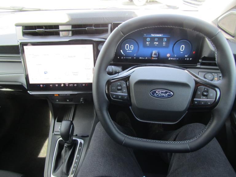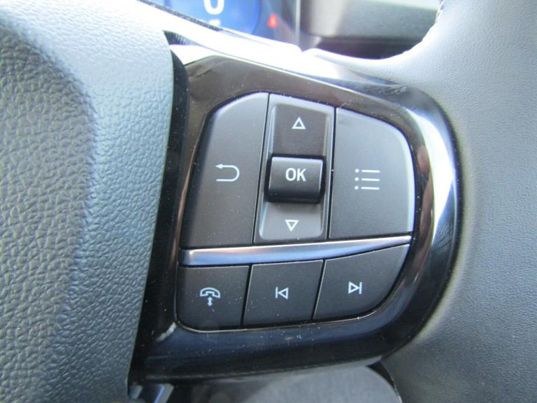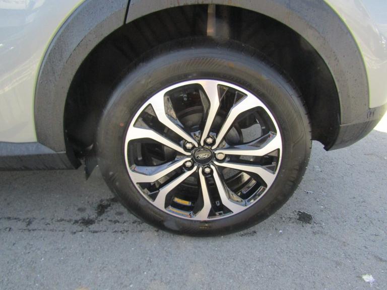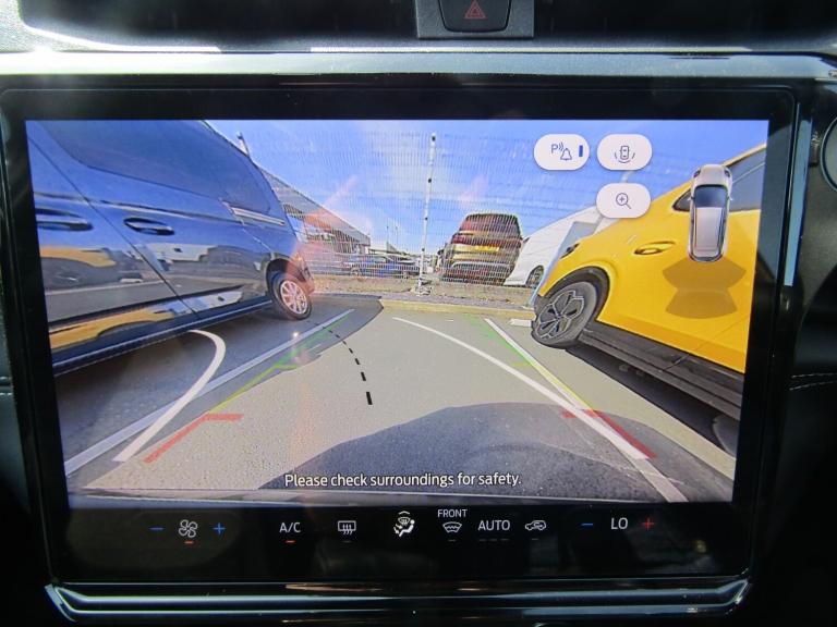 ..Driver impairment monitor, Emergency call service, Ford easy fuel, Full digital 12.8'' instrument cluster, Lane keeping aid with lane departure warning, Power assist steering, Selectable drive modes(Normal, sport, Eco, trail, slippery), Speed sign recognition, Standard suspension, 12'' landscape touchscreen display with wireless apple car play and android auto 6 speaker audio system, Ford pass connect and emergency assistance, Ford SYNC4 with connected navigation, Automatic headlights with rain sensing wipers and auto high beam, Front fog lamps, LED daytime running lights, LED rear lamps, LED third brake light, Quickclear heated windscreen, Rear privacy glass, Rear side wing doors, Rear wiper, 3 seat bench in 2nd row, Centre console with armrest and stowage, Electronic automatic temperature control (EATC), Ford megabox extended bootspace, Front and rear head restraints, Front floor mats, Manual 4 way driver seat adjust with lumbar adjustment, Single front passenger seat, Titanium cloth upholstery, 3 rear seatbelts, Child safety lock, Electronic stability control (ESC) and hill start assist, Pre-collision assist with autonomous emergency braking, pedestrian/cyclist detection & post-collision braking, Tyre pressure monitoring system (TPMS), Thatcham alarm, 17'' Absolute black machined finish alloy wheel