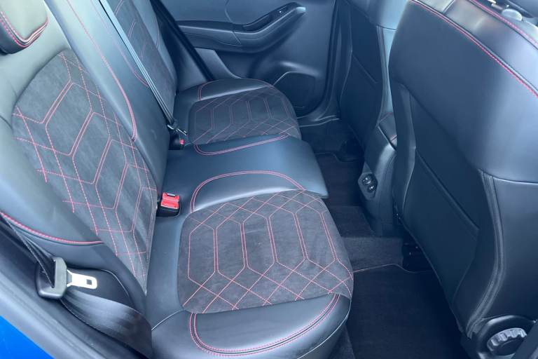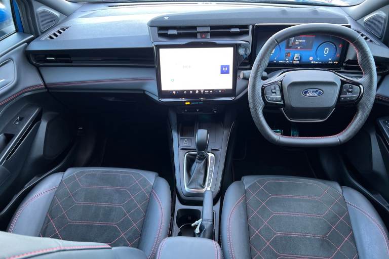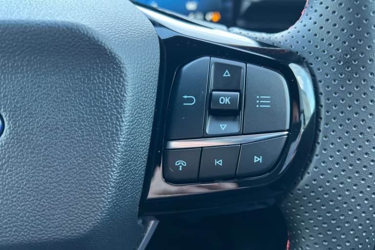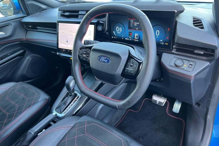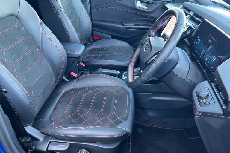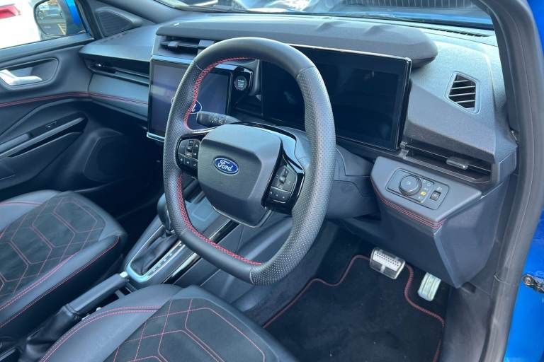 ..Premium Synthetic Leather - Synthetic Suede Inserts - Red Stitching - Black, Riverside Approved Sale, Remainder of Fords Manufacturers Warranty, Full Ford History, Top Spec, No Administration Fees Applicable, 145 Point Riverside Approved Mechanical / Safety Check, 12in Landscape Touchscreen Display - Wireless Apple CarPlay and Android Auto - Premium B&O Audio System 10 Speakers - Ford SYNC Navigation - FordPass Connect and Emergency Assist, 18in Alloy Wheels - Machined Finish - Absolute Black, ABS - Anti-lock Braking System, Airbags - Driver and Front Passenger, Automatic Headlights with Rain-Sensing Wipers and Auto High Beam, Cruise Control with Intelligent Speed Assist, Drivers Manual 4-Way Seat Adjustment with Manual Lumbar Adjust, Electric Windows - Front and Rear, Electronic Automatic Temperature Control - EATC, Ford Keyfree System - Keyless Entry with Ford Power Starter Button, Ford MegaBox Extended Bootspace, Instrument Cluster - 12.8 Full Digital, LED Headlights with Daytime Running Lights, LED Rear Lights, Lane Keeping Aid with Lane Departure Warning, Passenger 4-Way Seat with Lumbar Adjustment, Power Lift Tailgate, Power Steering, Power-Foldable Heated Door Mirrors with Puddle Lamps and Puma Logo Projection, Pre-Collision Assist with Autonomous Emergency Braking and Pedestrian-Cyclist Detection, Privacy Glass - Rear, Quickclear Heated Windscreen, Rear View Camera with Rear Parking Sensors, ST-Line Body Styling Kit with Unique Grille and Large Body Colour Rear Spoiler, Selectable Driving Modes - Normal - Eco - Sport - Slippery and Trail, Sports Suspension, Tyre Inflation Kit, Wireless Charging Pad