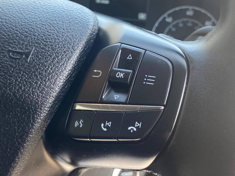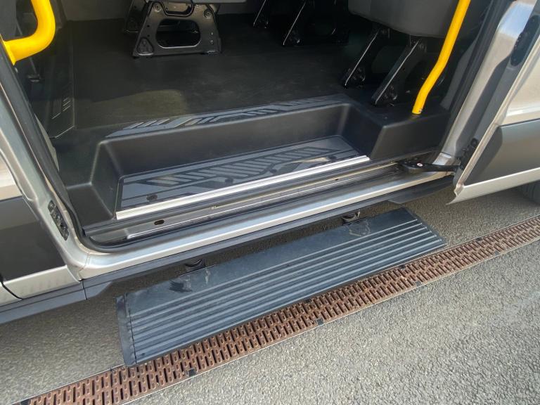 Emergency hammer, Passenger airbag with deactivate switch, Easy fuel capless refuelling system, PAS, Pre collision system with pedestrain detection with lane keeping aid, Selectable drive mode, Smart digital tachograph, Trip computer, Vehicle maintenance monitor, 270 degree rear cargo door with magnetic rentention, Auto wipers, Day/Night inside mirror, Daytime running lights, Driver large head/short arm mirror, Driver one touch up/down power windows, Dual power heated signal mirrors, Electric rear window defroster, Electric windshield defroster, Halogen headlights, High mounted stop lamp, High roof line, Kerbside side load doors, Part body coloured front bumpers, Power folding door mirrors, Power side step, Privacy glass, Quickclear windscreen, Solid paint, Wide bodyside grey mouldings, 4 way adjustable driver's seat with armrest, Cloth upholstery, Complete molded headliner, Completed rubber inside floor cover, Driver sunglasses roof storage, Dual front passenger seat, Glovebox with A4 file storage, Load compartment light, Locking glovebox, Overhead airconditioning vents, Overhead LED reading lights, Overhead stowage racks, Premium feel steering wheel, Rake and reach steering adjustment, Rear climate control, Reclinable rear seats with armrests, Semi-automatic air conditioning, Advance pack basic - Transit, Rear seat pack 8 - Transit minibus, 2nd remote key, Door entry remote control unit with 2 fobs, Keyless start, Remote central locking, 2 x 12V power outlets, 62 mph engine governor, ABS + ESP + Hill start assist, Auto start/stop system, Electronic dynamic cornering control, Heavy duty battery, Heavy duty front axle, Dual rear wheels, Steel spare wheel