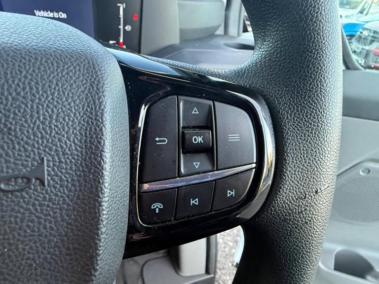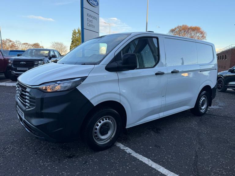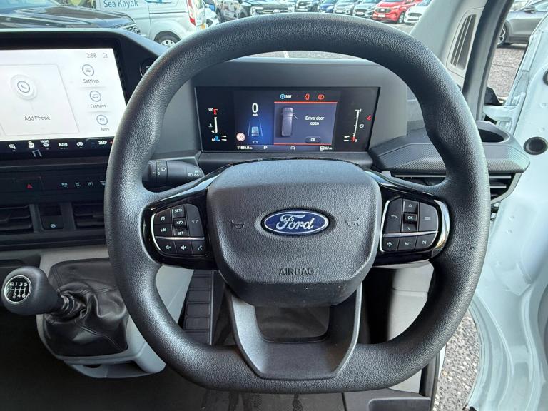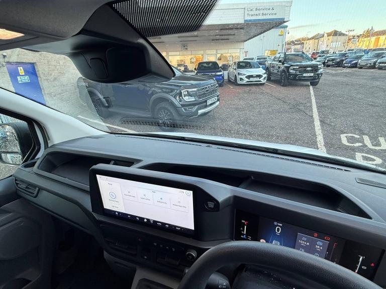 Passenger airbag, 13 inch Touchscreen, 5G embedded modem, AECS NO SMS/Roll Detect 2G, PAS, Tyre pressure monitor, Automatic headlights, Automatic high headlamps, Black exterior mirror finish, Black front bumper, Daytime running lights, Dual power heated signal mirrors, Front splash guards, Halogen Hybrid Headlamps, Kerbside side load doors, Low roof line, Power driver's front window, Quickclear front window defroster, Rear cargo hinged door, Rear splash guards, Solid paint, Tinted glass, Trailer sway control, Unpainted rear bumper, 6 Load compartment tie down loops, Courtesy light, Full metal bulkhead, LED lights, Driver assistance pack 1 - Transit custom, Entry dual passenger seat pack - Transit custom, 2 remote keys, Alcohol Interlock wiring preparation pack, Keyless start, Power door dead locks, Standard unlocking, 20L AdBlue tank, 55 litre fuel tank, ABS, Diesel particulate filter, ESP, Hill launch assist, Traction control, SYNC 4 - Android Auto/Apple Car Play,advance speech recognition,over the air update capability, 16 inch steel wheels, 16 inch wheel centre cap, Tyre repair kit