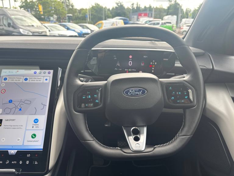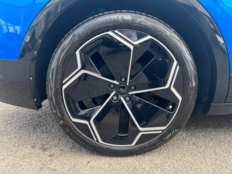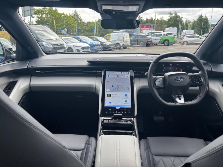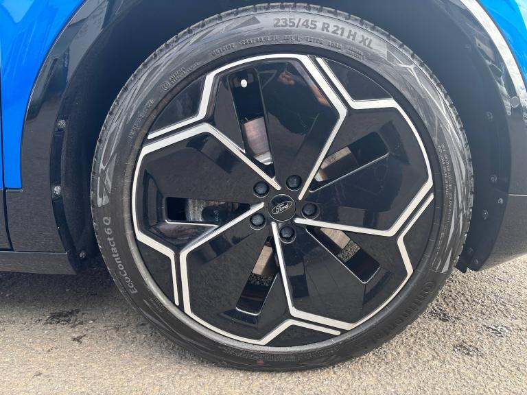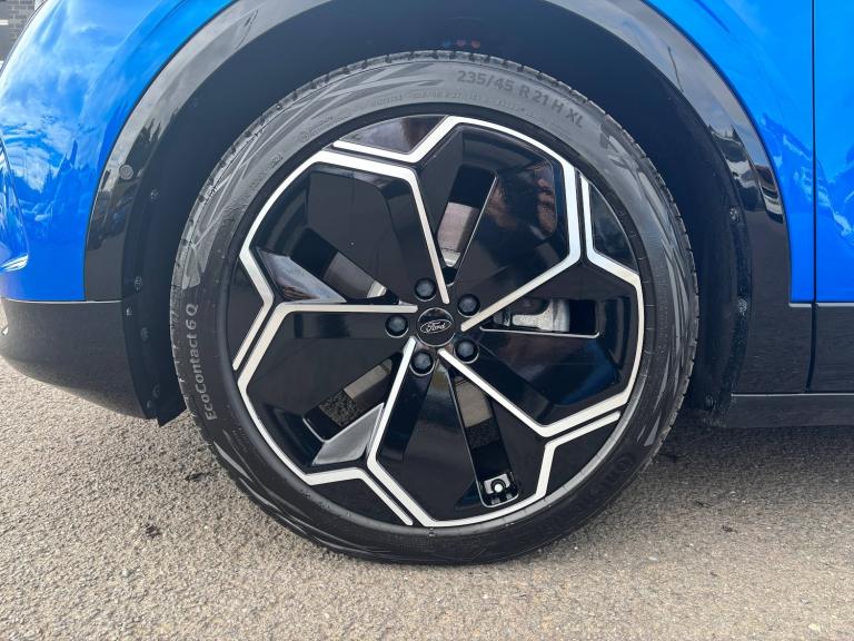 3 point rear seatbelts, ABS, Child locks on rear doors, Electric power steering, Emergency services call system, Front and rear parking sensors, Hands free power liftgate, Inductive wireless phone charging, Intelligent adaptive cruise control with stop and go, Lane departure warning with lane keeping aid, Navigation system, Rear view camera, Selectable drive modes, Traffic sign recognition, Wrong way alert, 3rd brake light, Automatic high/low beam, Black door mirrors, Door mirrors with memory function, Exterior mirror with logo puddle lamps, Glare-free matrix LED headlamps, LED daytime running lights, LED rear lights, LED tail lamps with ford lettering and Coast-To-Coast applique, Panoramic roof, Power folding and heated door mirrors, Rear privacy glass, Rear side wing doors, Solid paint, 12 way power driver seat with memory, 3 seat bench in 2nd row, 6 way manual passenger seat adjustments, Driver seat massage function, Dual zone electronic automatic temperature control, Front door scuff plates, Front headrests, Front sport seats, Full sensico upholstery, Heated driver and passenger seats, LED ambient lighting, Pre Conditioning battery and cabin, Rear head restraints, Single front passenger seat, Blue oval charge network - Lifetime access, Keyless entry and start, Thatcham alarm, Premium 10 speaker BandO sound system