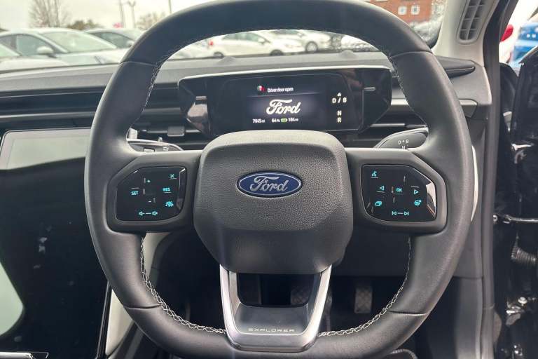 This 2025 Ford Explorer Extended Range Select is a remarkable electric vehicle, boasting a single owner from new, ensuring its pristine condition and careful upkeep. As an electric model, it offers a substantial 82 kWh battery capacity, providing an impressive maximum range of 374 miles on a full charge. Recharging at home is convenient, taking approximately 8 hours and 51 minutes with a 7kW charger, while rapid public charging can replenish the battery from empty to 80% in just 32 minutes. This Select trim also comes equipped with front and rear parking sensors, including dedicated front and rear parking assistance, and a rear view camera for enhanced manoeuvrability.The performance of this Ford Explorer is truly noteworthy, with an acceleration of 0 to 62 miles per hour achieved in a swift 6.4 seconds, demonstrating its dynamic capabilities. The highlight of its 374 mile maximum range at new signifies its excellent efficiency and ability to cover significant distances between charges, setting it apart from many other electric vehicles. This combination of extended range, rapid charging, and brisk acceleration makes the 2025 Ford Explorer Extended Range Select a compelling choice for those seeking a capable and modern electric SUV.