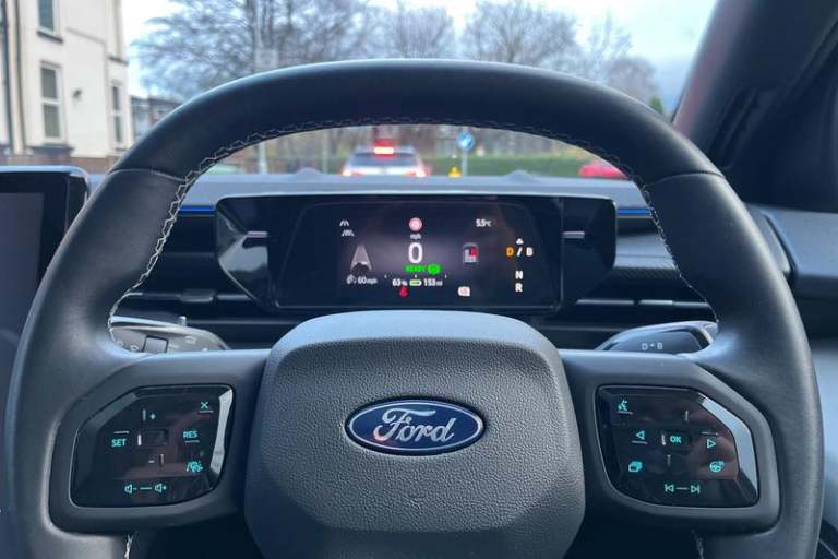 12- Way Power Driver Seat with Memory and Massage Function, 14.6in Touchscreen with SYNC Move, 20in Alloy Wheels - Aero - Magnetic - Bright Machined, 5.3in Full Digital Cluster Screen, 6-Way Manual Passenger Seat, Blue Oval Charge Network Access - Lifetime Access, Cross Traffic Alert with Active Braking and Exit Warning, DEATC - Dual-Zone Electronic Automatic Temperature Control, Door Mirrors - Heated - Power-Foldable with Logo Puddle Lamps and Memory Function - Black, Front Door Scuff Plates, Front and Rear Parking Sensors, Hands-Free Power-Operated Liftgate, Heated Driver and Front Passenger Seats, Inductive Wireless Phone Charging, Intelligent Adaptive Cruise Control with Stop-Go, Keyless Entry-Start, LED Ambient Lighting, Lane Keeping Aid with Lane Departure Warning, Matrix LED Headlamps with Automatic High-Low Headlamp and Glare-Free Function, Panoramic Roof, Pre-Conditioning - Battery and Cabin, Premium 10-Speaker B&O Sound System, Rear Lights - LED, Rear Privacy Glass, Rear View Camera, Selectable Drive Modes, Thatcham Alarm, Traffic Sign Recognition with Navigation with Wrong Way Alert