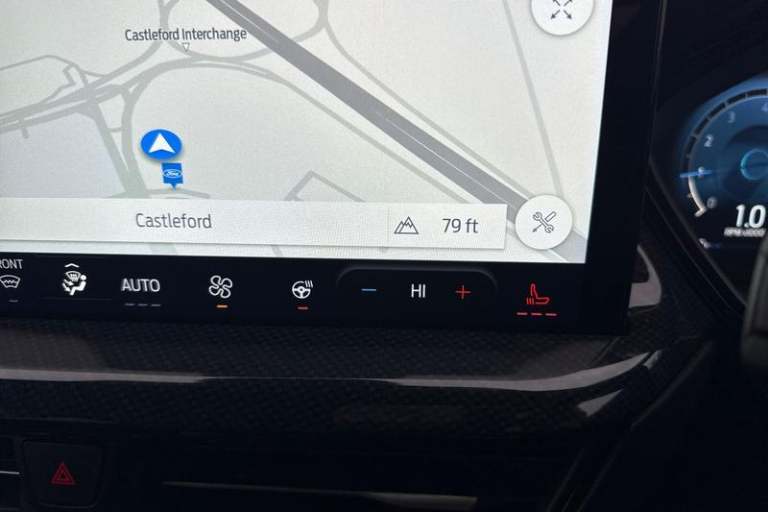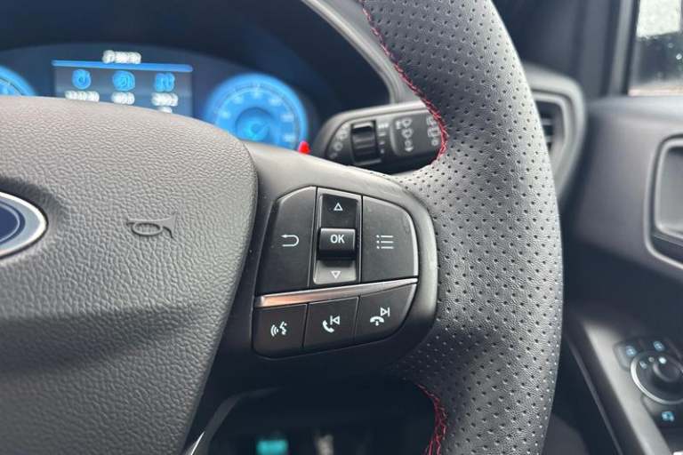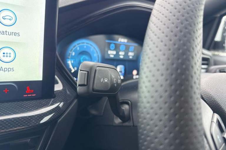 12.3 Digital instrument cluster, Bluetooth system, Digital clock, Easy fuel capless refuelling system, Eco mode, Ford SYNC4 Nav with 13.2'' touchscreen, DAB, Emergency Assistance, Apple Carplay & Android Auto, B&O Premium Audio with 10 speakers, FordPass Connect, Lane keeping system - lane keeping alert and lane keeping aid, PAS, Rev counter, Selectable drive mode, Service interval indicator, Trip computer, Wireless charging pad, Auto headlamps (on/off), Body coloured door handles, Electrically operated front and rear windows with one touch opening and closing, Electrically operated heated power fold door mirrors with puddle lamp with side indicators, Front variable intermittent wipers with electric wash, Heated rear window, LED daytime running lamp, LED rear lamps, LED third brake light, Polished twin tailpipe, Privacy glass, Quickclear heated windscreen, Rain sensor, Rear side wing doors, Tailgate wash/wipe, Unique ST-Line grille, full bodystyling kit, and large body coloured rear roof spoiler, 3 rear headrests, 3 seat bench in 2nd row, Dual zone electronic air temperature control, Full sensico premium upholstery, Height adjustable front headrests, Isofix child seat preparation, Load through ski hatch, Manual 2-way passenger seat adjust, Power 4-way driver seat adjust, with power lumbar adjust, Reach + rake adjustable steering column, Single front passenger seat, 3x3 point rear seatbelts, ABS+Electronic Brake force Distribution, Auto hold function, Driver airbag, EDL