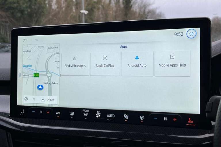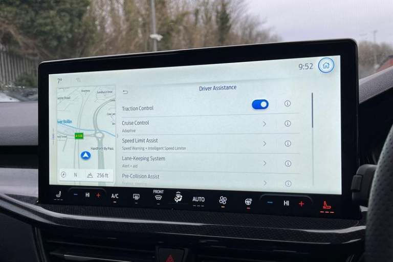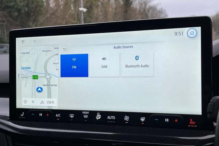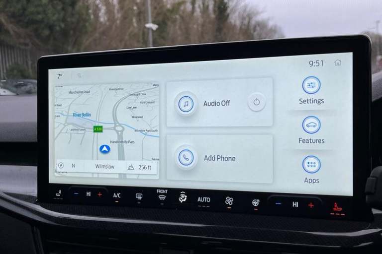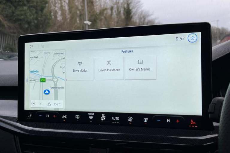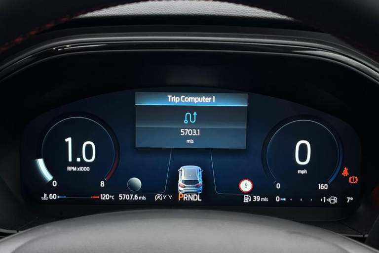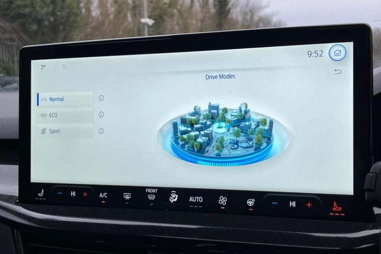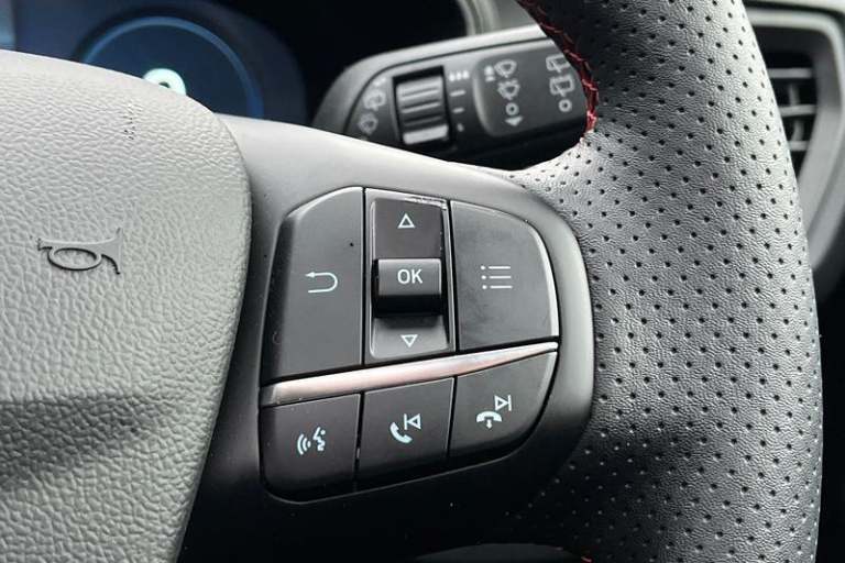 12.3 Digital instrument cluster, Bluetooth system, Digital clock, Easy fuel capless refuelling system, Eco mode, Ford SYNC4 Nav with 13.2'' touchscreen, DAB, Emergency Assistance, Apple Carplay & Android Auto, B&O Premium Audio with 10 speakers, FordPass Connect, Lane keeping system - lane keeping alert and lane keeping aid, PAS, Rev counter, Selectable drive mode, Service interval indicator, Trip computer, Wireless charging pad, Auto headlamps (on/off), Body coloured door handles, Electrically operated front and rear windows with one touch opening and closing, Electrically operated heated power fold door mirrors with puddle lamp with side indicators, Front variable intermittent wipers with electric wash, Heated rear window, LED daytime running lamp, LED rear lamps, LED third brake light, Polished twin tailpipe, Privacy glass, Quickclear heated windscreen, Rain sensor, Rear side wing doors, Tailgate wash/wipe, Unique ST-Line grille, full bodystyling kit, and large body coloured rear roof spoiler, 3 rear headrests, 3 seat bench in 2nd row, Dual zone electronic air temperature control, Full sensico premium upholstery, Height adjustable front headrests, Isofix child seat preparation, Load through ski hatch, Manual 2-way passenger seat adjust, Power 4-way driver seat adjust, with power lumbar adjust, Reach + rake adjustable steering column, Single front passenger seat, 3x3 point rear seatbelts, ABS+Electronic Brake force Distribution, Auto hold function, Driver airbag, EDL