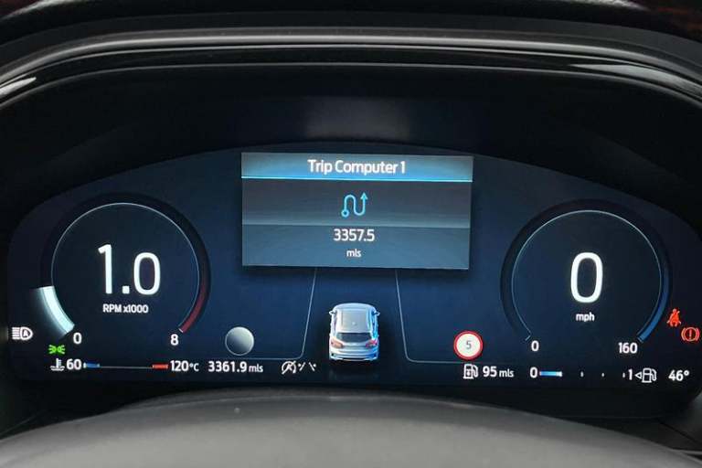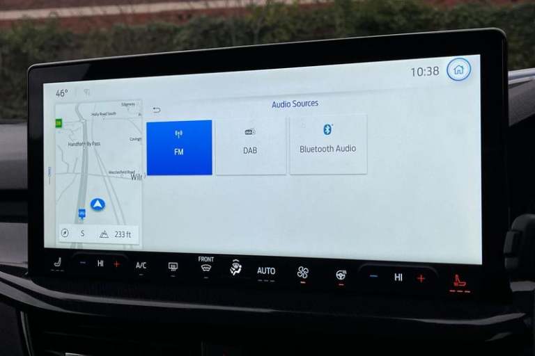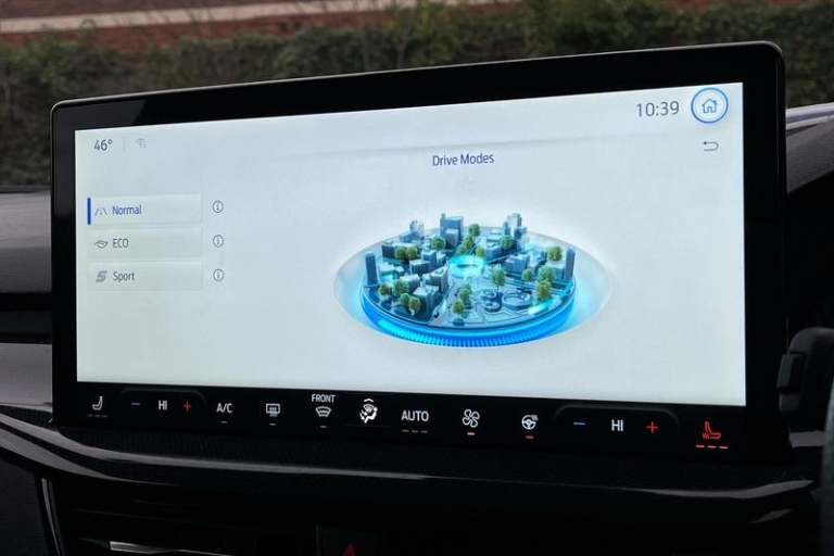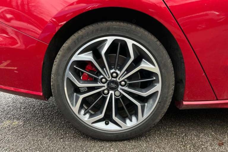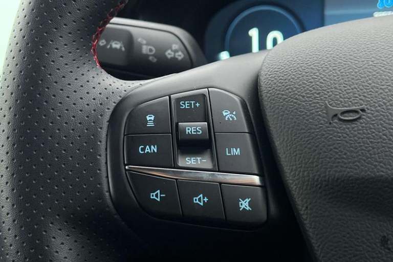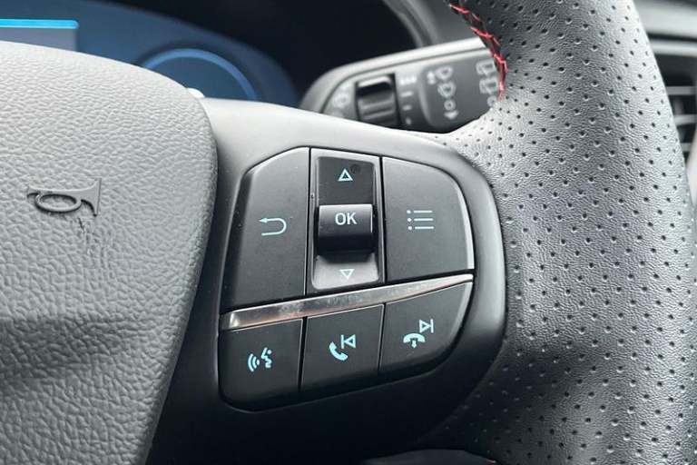 12.3 Digital instrument cluster, Bluetooth system, Digital clock, Easy fuel capless refuelling system, Eco mode, Ford SYNC4 Nav with 13.2'' touchscreen, DAB, Emergency Assistance, Apple Carplay & Android Auto, B&O Premium Audio with 10 speakers, FordPass Connect, Lane keeping system - lane keeping alert and lane keeping aid, PAS, Rev counter, Selectable drive mode, Service interval indicator, Trip computer, Wireless charging pad, Auto headlamps (on/off), Body coloured door handles, Electrically operated front and rear windows with one touch opening and closing, Electrically operated heated power fold door mirrors with puddle lamp with side indicators, Front variable intermittent wipers with electric wash, Heated rear window, LED daytime running lamp, LED rear lamps, LED third brake light, Polished twin tailpipe, Privacy glass, Quickclear heated windscreen, Rain sensor, Rear side wing doors, Tailgate wash/wipe, Unique ST-Line grille, full bodystyling kit, and large body coloured rear roof spoiler, 3 rear headrests, 3 seat bench in 2nd row, Dual zone electronic air temperature control, Full sensico premium upholstery, Height adjustable front headrests, Isofix child seat preparation, Load through ski hatch, Manual 2-way passenger seat adjust, Power 4-way driver seat adjust, with power lumbar adjust, Reach + rake adjustable steering column, Single front passenger seat, 3x3 point rear seatbelts, ABS+Electronic Brake force Distribution, Auto hold function, Driver airbag, EDL