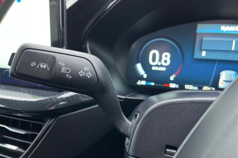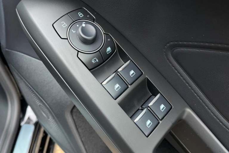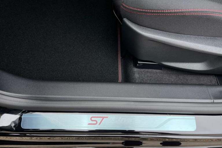 12.3 Digital instrument cluster, Bluetooth system, Digital clock, Easy fuel capless refuelling system, Eco mode, Ford SYNC4 Nav with 13.2'' touchscreen, DAB, Emergency Assistance, Apple Carplay & Android Auto, B&O Premium Audio with 10 speakers, FordPass Connect, Lane keeping system - lane keeping alert and lane keeping aid, PAS, Rev counter, Selectable drive mode, Service interval indicator, Trip computer, Wireless charging pad, Auto headlamps (on/off), Body coloured door handles, Electrically operated front and rear windows with one touch opening and closing, Electrically operated heated power fold door mirrors with puddle lamp with side indicators, Front variable intermittent wipers with electric wash, Heated rear window, LED daytime running lamp, LED rear lamps, LED third brake light, Polished twin tailpipe, Privacy glass, Quickclear heated windscreen, Rain sensor, Rear side wing doors, Tailgate wash/wipe, Unique ST-Line grille, full bodystyling kit, and large body coloured rear roof spoiler, 3 rear headrests, 3 seat bench in 2nd row, Dual zone electronic air temperature control, Full sensico premium upholstery, Height adjustable front headrests, Isofix child seat preparation, Load through ski hatch, Manual 2-way passenger seat adjust, Power 4-way driver seat adjust, with power lumbar adjust, Reach + rake adjustable steering column, Single front passenger seat, 3x3 point rear seatbelts, ABS+Electronic Brake force Distribution, Auto hold function, Driver airbag, EDL